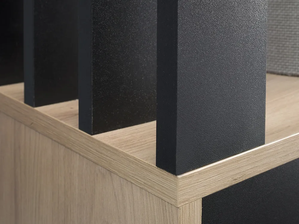 - Krawędzie zabezpieczone zostały okleiną PCV. Chroni ona krawędzie przed uderzeniami i obiciami, nadając meblom estetyczne, eleganckie wykończenie.