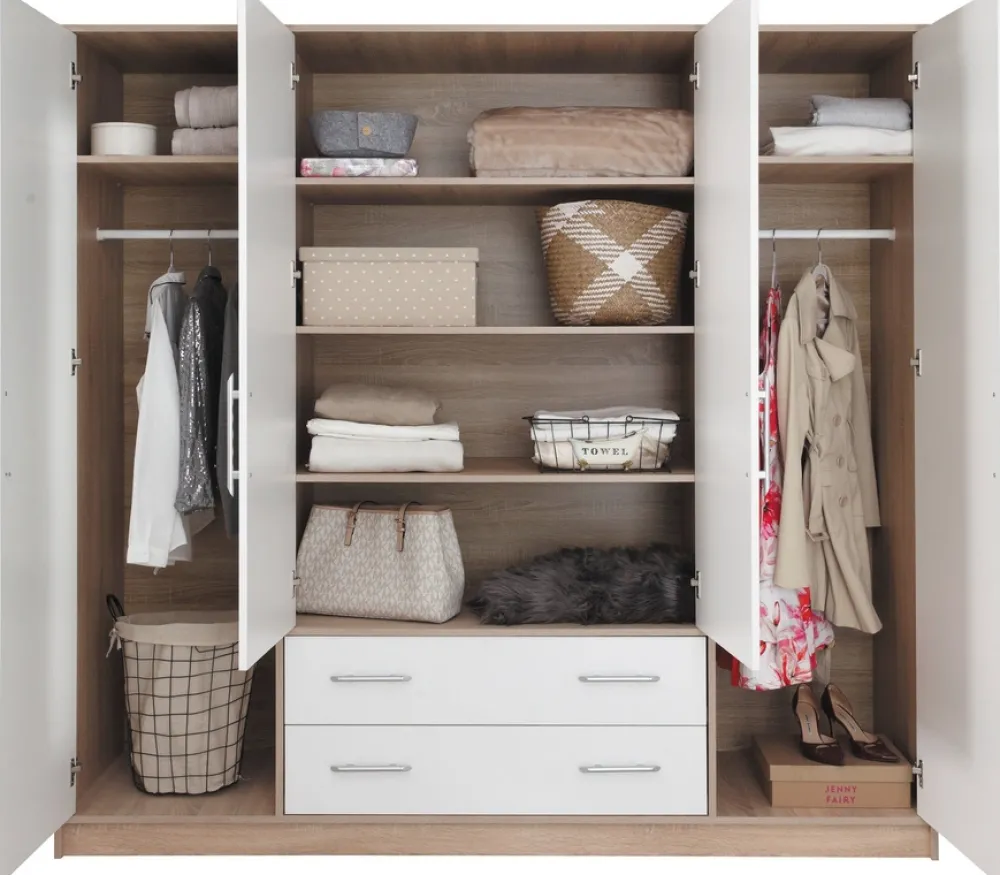 - 4-drzwiowa szafa do sypialni – doskonała do przechowywania odzieży i dodatków