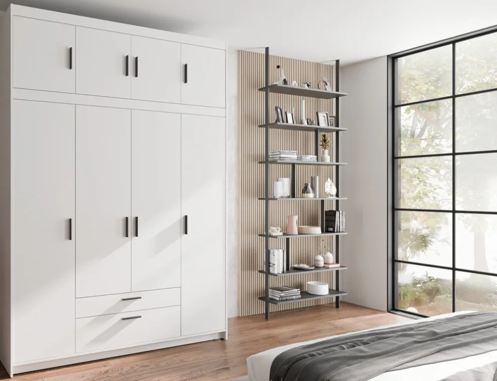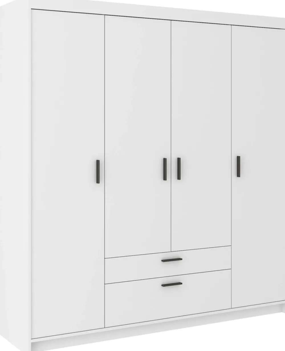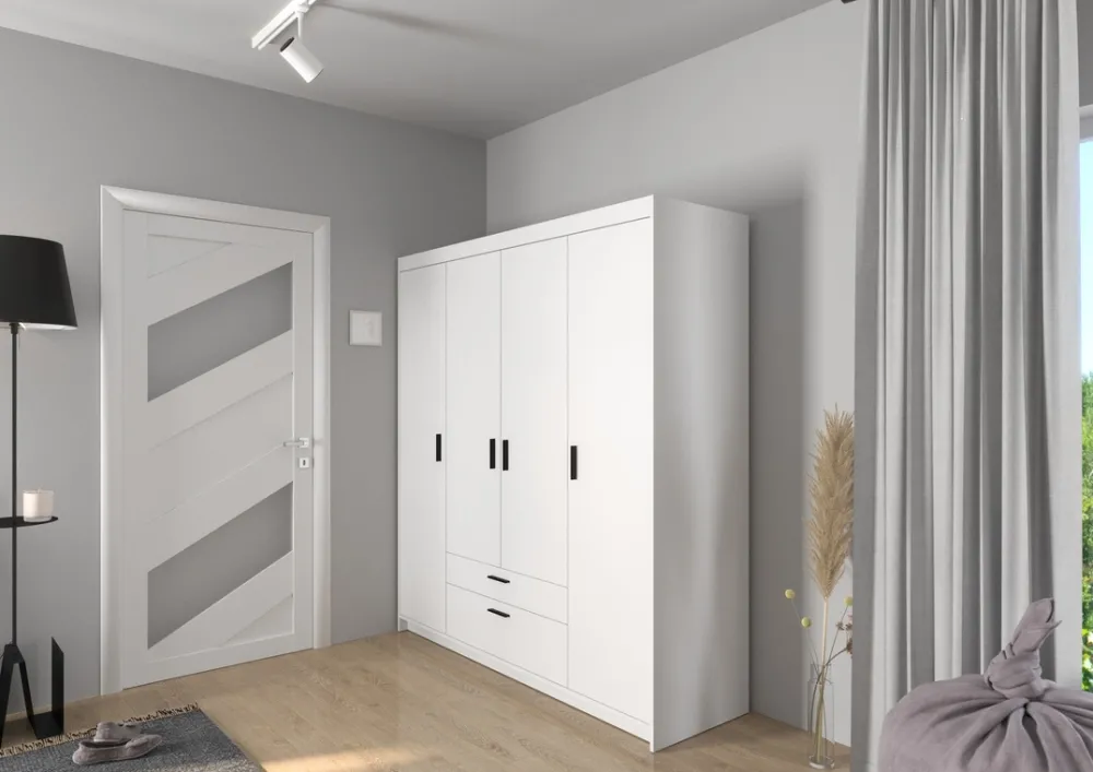 Garderoby|Meble Młodzieżowe>Lempert Nowoczesna biała szafa modułowa 176 cm uchylna z szufladami KUBA biały