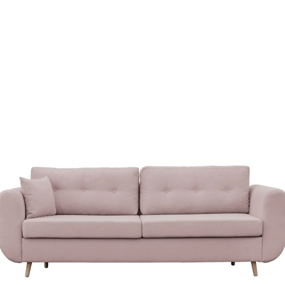 Nowoczesna kanapa zachwyci Cię swoim prostym, minimalistycznym designem z okrągłymi boczkami nadającymi kanapie charakteru. Wysokie drewniane nóżki nie tylko gwarantują stabilność, ale ułatwiają utrzymanie czystości pod meblem.
