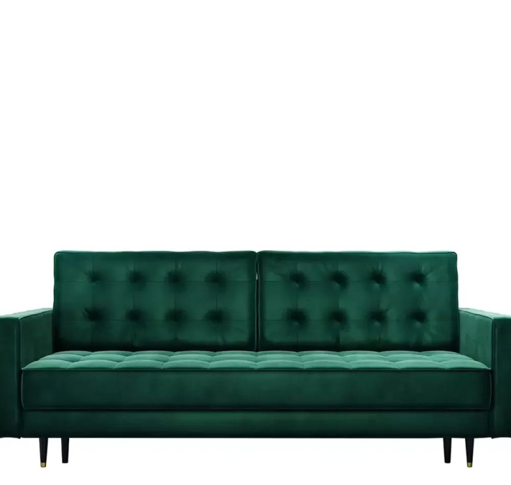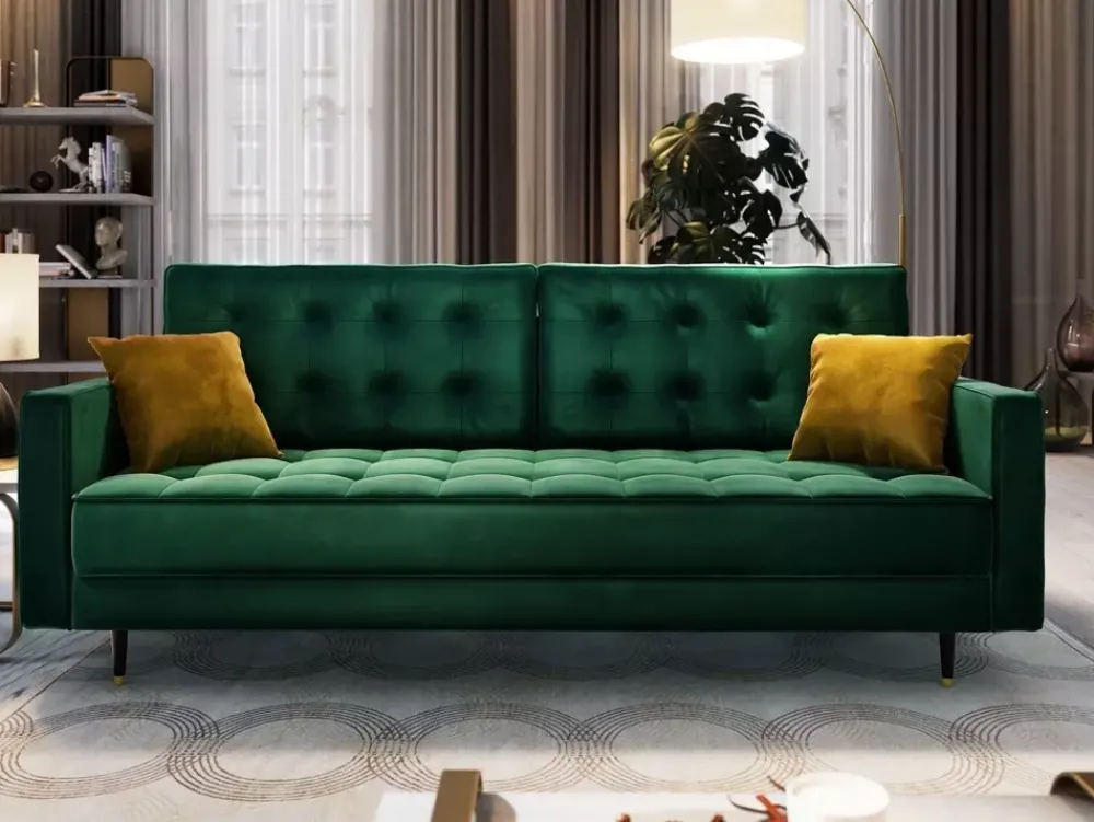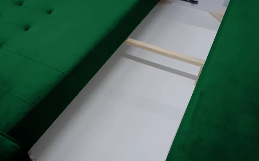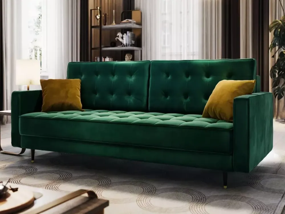 - Kanapa posiada tapicerowane plecy, co sprawia, że może stać nawet pośrodku salonu.