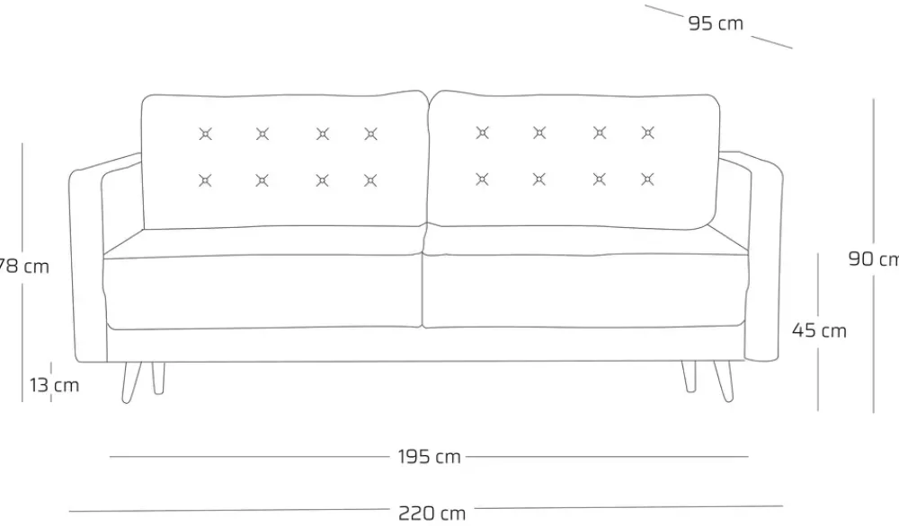 Wprowadź do swojego salonu szyk i elegancję z rozkładaną kanapą LEESY. Pikowane przeszycia w połączeniu z wysokimi drewnianymi nóżkami dodają meblowi charakteru oraz nuty luksusu, sprawiając, że idealnie odnajdzie się zarówno w nowoczesnych salonach jak i tych w stylu glamour. Dodatkowo wysokie nóżki ułatwią utrzymanie czystości pod meblem.