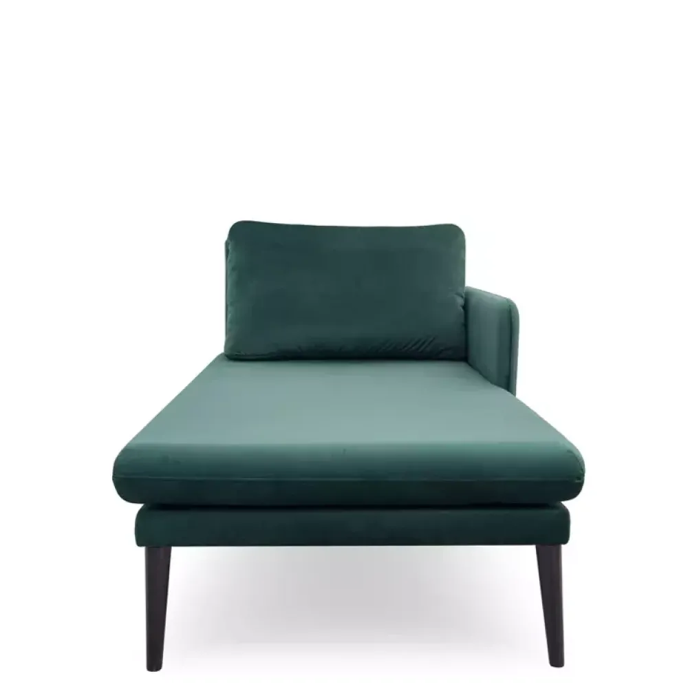 Szezlong SENU to nietypowy mebel, jednak polecimy go każdemu, kto ceni sobie wyszukane motywy w aranżacji wnętrz. Jak wiadomo taki typ sofy jest popularny w Europie od XVIII wieku kiedy to zaczął pojawiać się na salonach wraz ze wzrostem popularności stylu Rokoko. Mebel wykonano z dbałością, w estetycznym tonie. Siedzisko i oparcie są wykonane z drewna, płyty wiórowej i wysokogatunkowej pianki poliuretanowej osadzonej na sprężynach falistych, a całość obito przyjemną tkaniną welurową imitująca aksamit. Szezlong ten nada się do każdego wystroju, czy będzie to minimalistyczna przestrzeń, czy aranżacja bardziej nowoczesna, a nawet w stylu glamour.