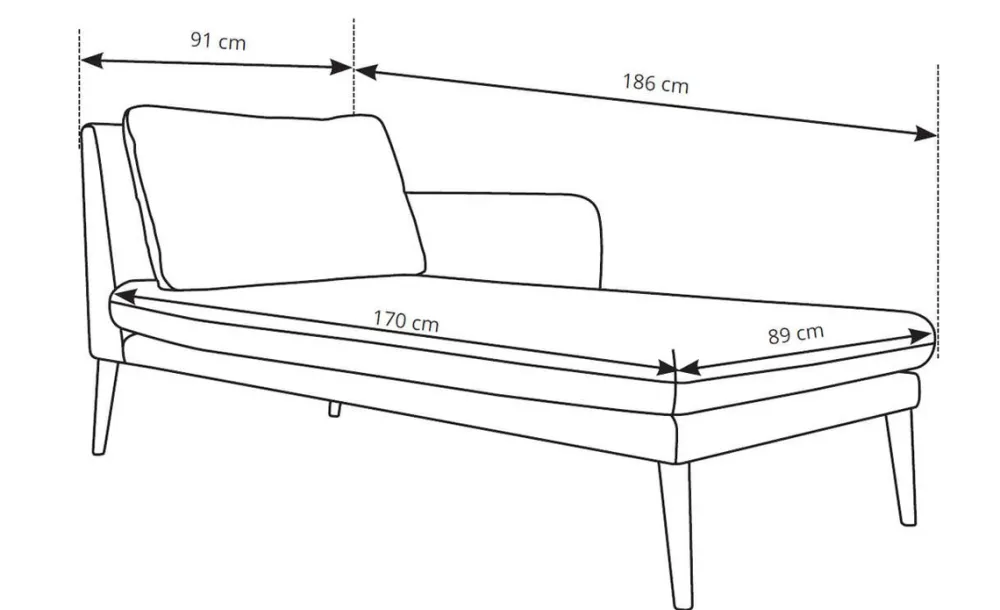 - Stylowy szezlong na wysokich nóżkach w zestawie z wygodną prostokątną poduszką, dostępny w kilkudziesięciu wariantach kolorystycznych.
