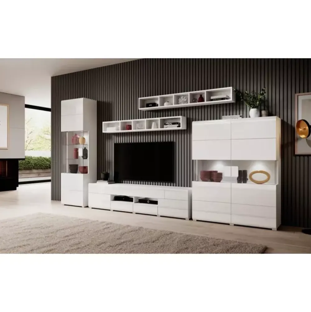TENDER to seria stylowych mebli do salonu wyróżniająca się nowoczesnymi zaoblonymi kształtami, subtelnymi wstawkami w kolorach drewnopodobnych oraz szeroką gamą dostępnych brył. Dostępne komody, witryny, regały, półki oraz szafki rtv pozwolą na zaaranżowanie przestrzeni salonu w funkcjonalny i praktyczny sposób. Meble zostały wykonane z wysokiej jakości materiałów przy wykorzystaniu precyzyjnych technologii co sprawia, że będą one trwałe i wygodne w użytkowaniu. TENDER to doskonała propozycja dla osób poszukujących nowoczesnego designu idącego w parze z wysokiej jakości wykonaniem.