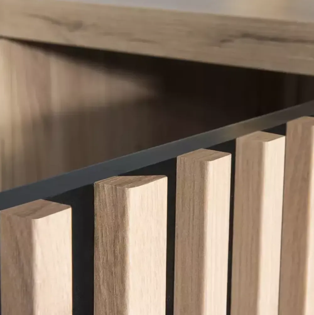 - Lamele wykonano w formie listw MDF.
