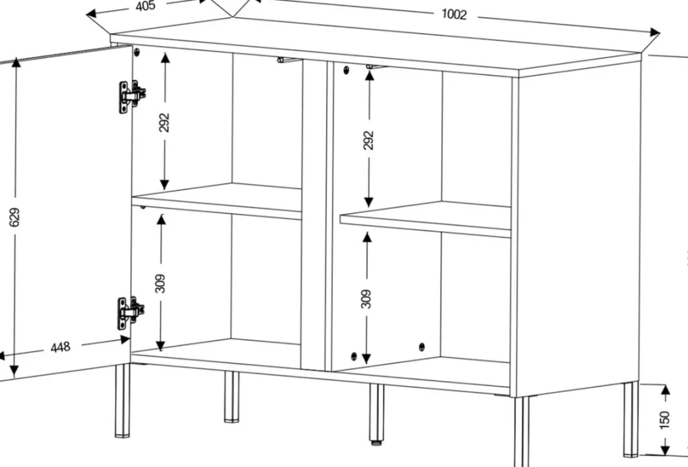 - Korpus wykonany jest z wysokiej jakości płyty laminowanej 16 mm, odpornej na zarysowania i łatwej do utrzymania w czystości.