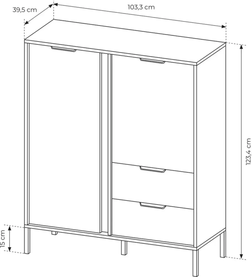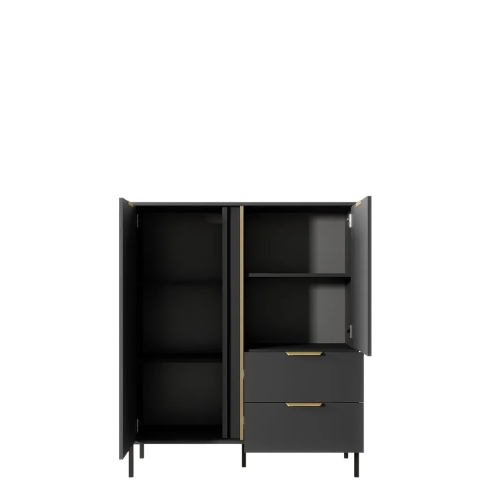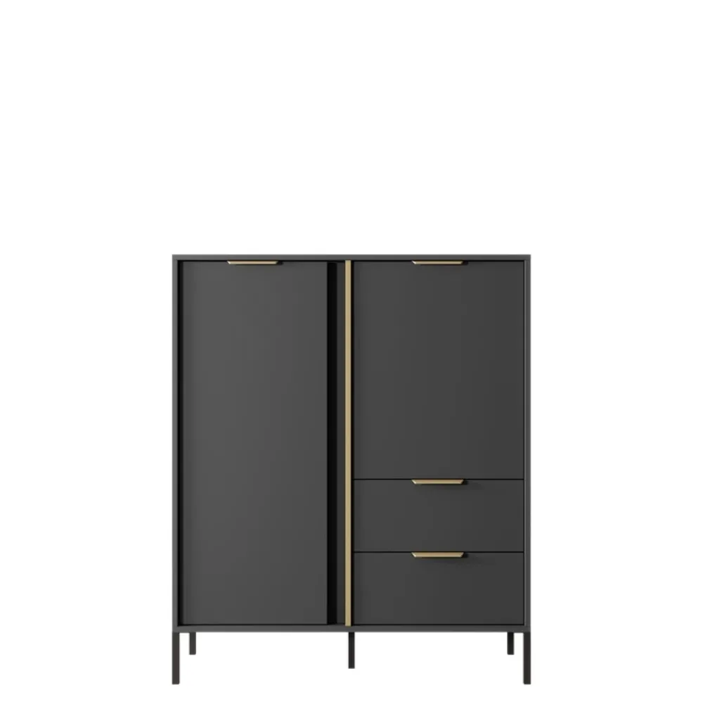 - Ta wysoka komoda do salonu LECCE to nowoczesna propozycja do Twojego salonu. Ma jedne duże drzwi po lewej stronie, po prawej natomiast ma jedne drzwi mniejsze oraz dwie pojemne szuflady.