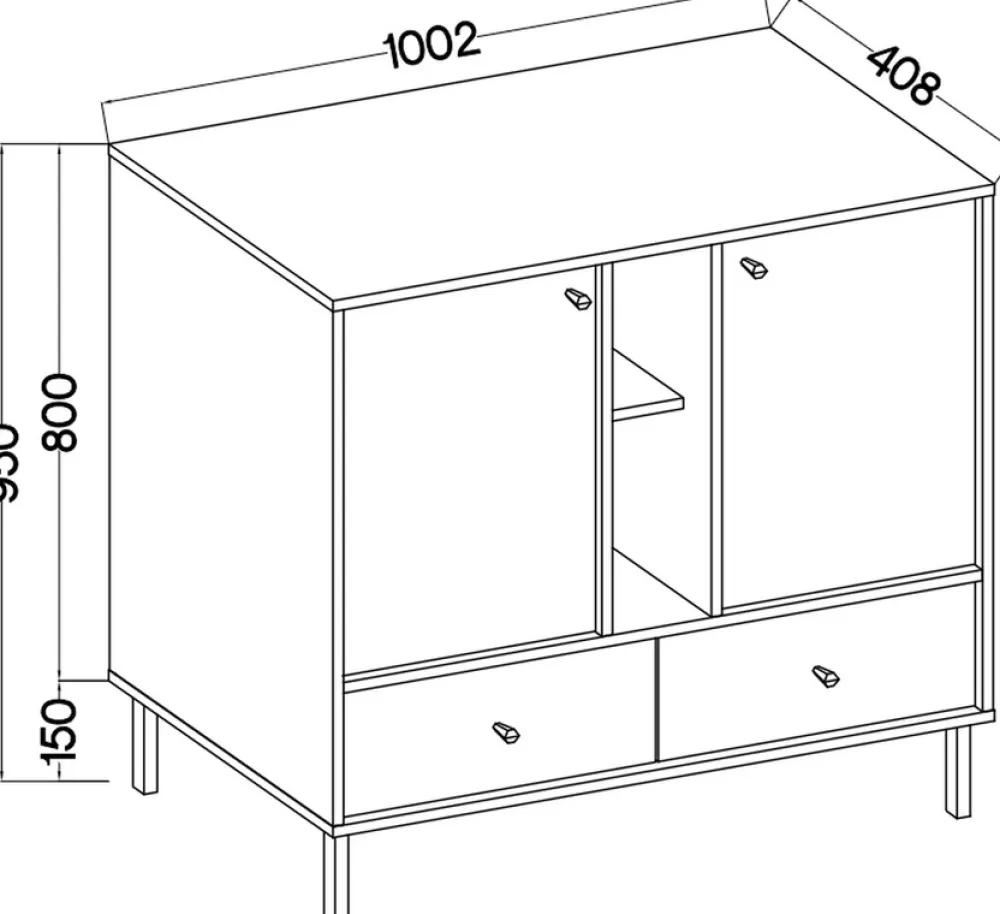 Stabilność i trwałość komody zapewniają metalowe nóżki o wysokości 15 cm. Dzięki nim mebel nie tylko wygląda elegancko, ale jest także łatwy do czyszczenia pod spodem. Metalowe uchwyty dodają komodzie nowoczesnego wyglądu i są wygodne w użytkowaniu, zapewniając jednocześnie wytrzymałość na lata.