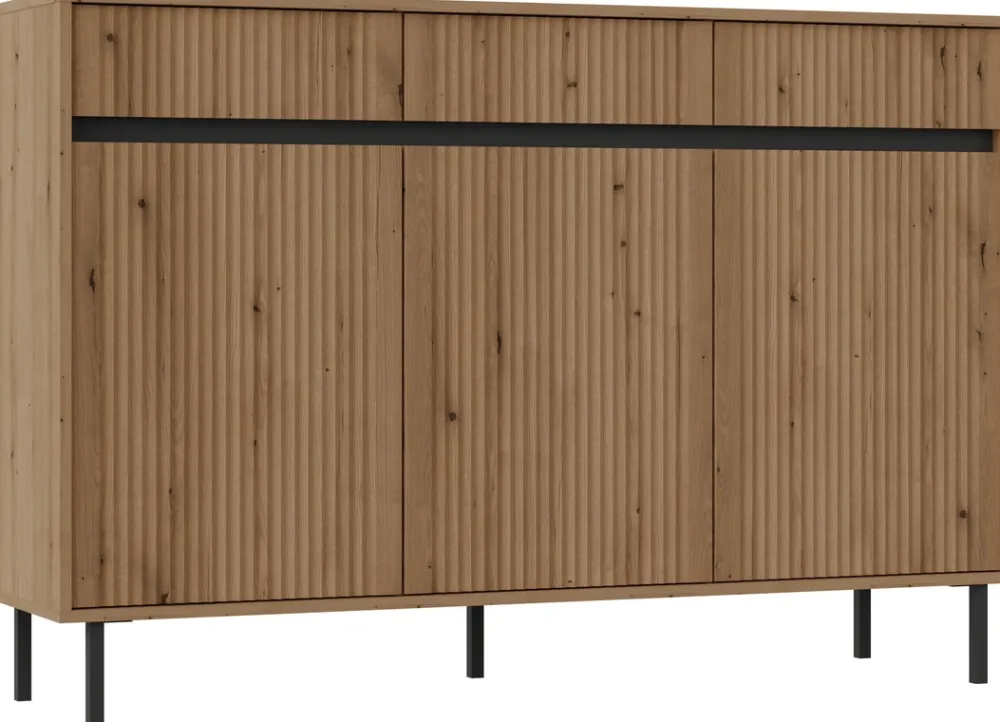 Komody>Lempert Pojemna frezowana komoda z szufladami do salonu 148 cm OMEGA dąb evoke