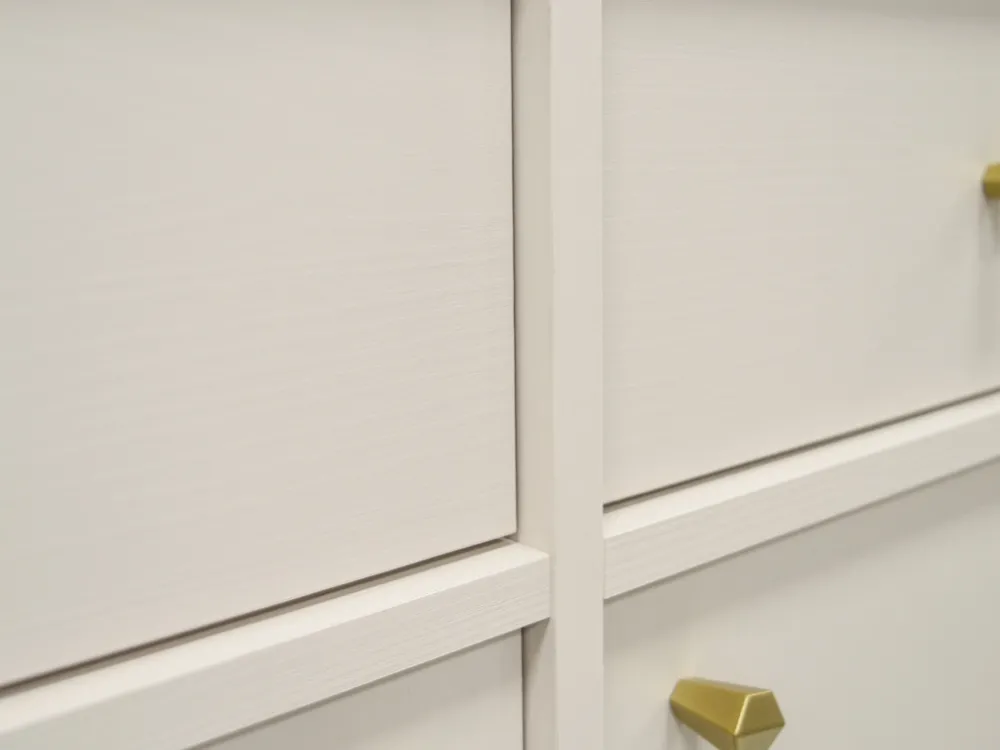 - Obrzeża zostały estetycznie wykończone okleiną ABS. Okleina ABS to sposób na estetyczne wykończenie mebla, dodatkowo gwarantuje odporność na uszkodzenia spowodowane obtarciami.