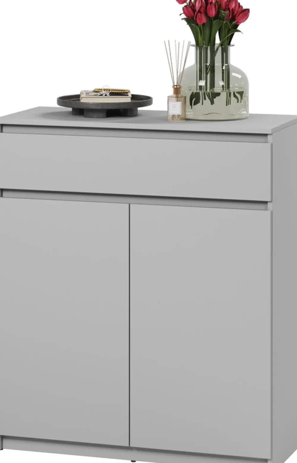 Komoda SIMPLY w eleganckim, szarym wykończeniu to idealny wybór do nowoczesnych przestrzeni, w których liczy się zarówno styl, jak i funkcjonalność. Minimalistyczna forma skrywa w sobie przemyślane rozwiązania – dwie pojemne szafki, szufladę na drobiazgi oraz praktyczne półki. Jej dopracowana konstrukcja oraz trwałe materiały sprawiają, że mebel ten świetnie sprawdzi się w codziennym użytkowaniu, zachowując swój estetyczny wygląd przez lata.