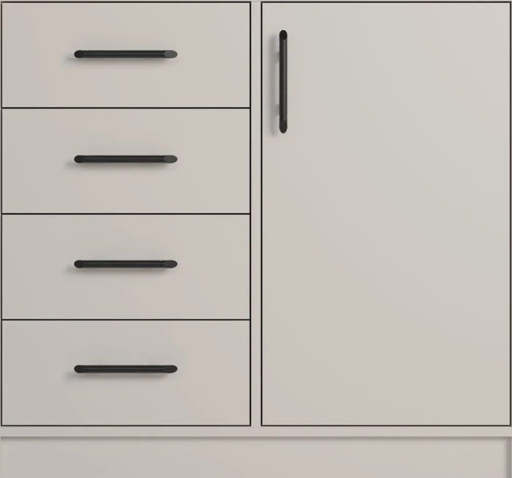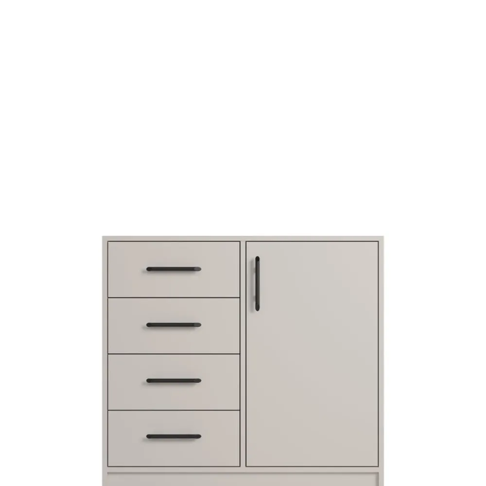 - Komoda SEVAS kaszmir 90 cm – z 4 szufladami i szafką z półką. Idealna do sypialni, salonu lub przedpokoju. Kolor kaszmir dodaje elegancji, a praktyczny układ zapewnia wygodne przechowywanie. Styl, porządek i trwałość w jednym.