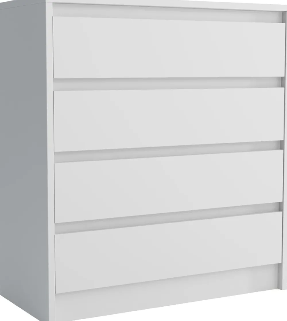 - Biała komoda ARTEGO z pewnością zaskoczy Cię funkcjonalnością. Nowoczesna komoda wyposażona została w cztery pojemne szuflady, których płynne działanie zapewniają prowadnice rolkowe. Obrzeża mebla chroni przed uszkodzeniami okleina ABS.