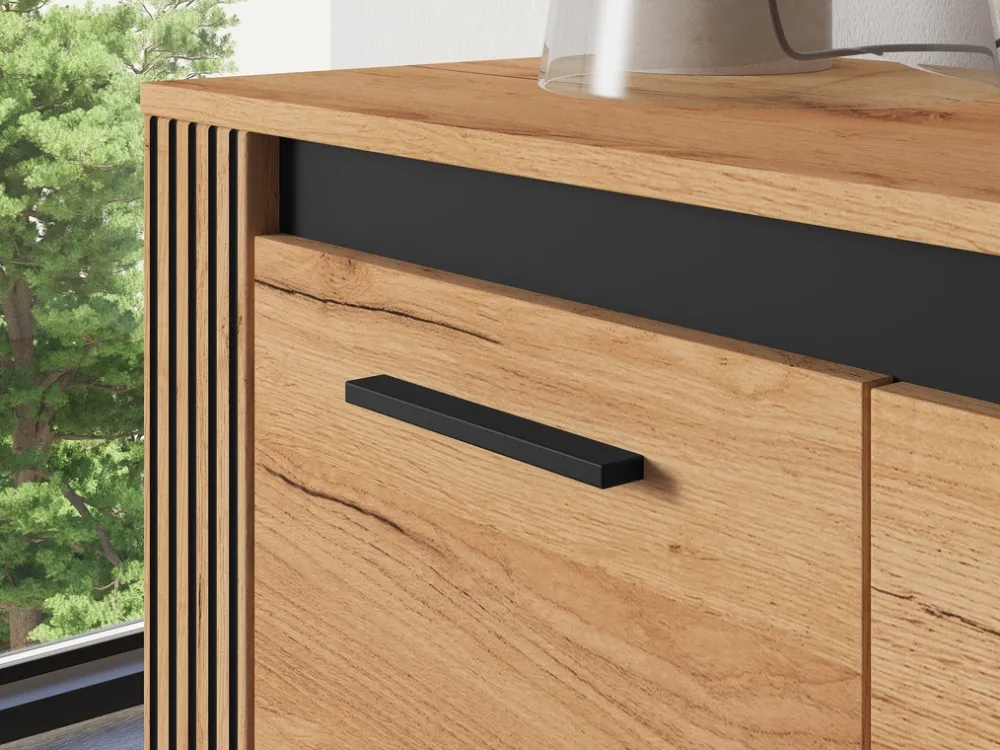 - Stylowe lamele boczne – dodają meblowi głębi i designerskiego charakteru