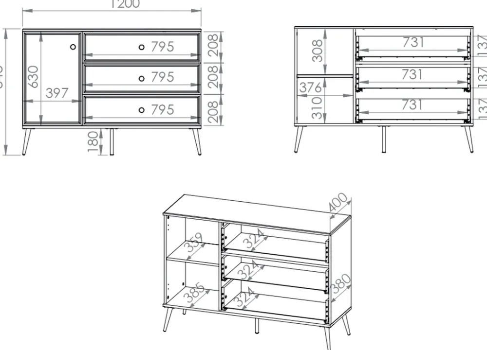 - Korpus wykonano z płyty laminowanej 16 mm, natomiast fronty wykonano z płyty MDF. Płyta laminowana charakteryzuje się odpornością na drobne zarysowania, a płyta MDF jest materiałem o wysokiej gęstości, co również przekłada się na jej wytrzymałość.