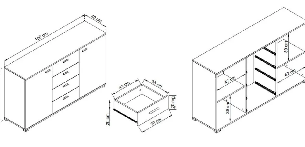 - Komoda wyposażona w dwie półki i cztery szuflady