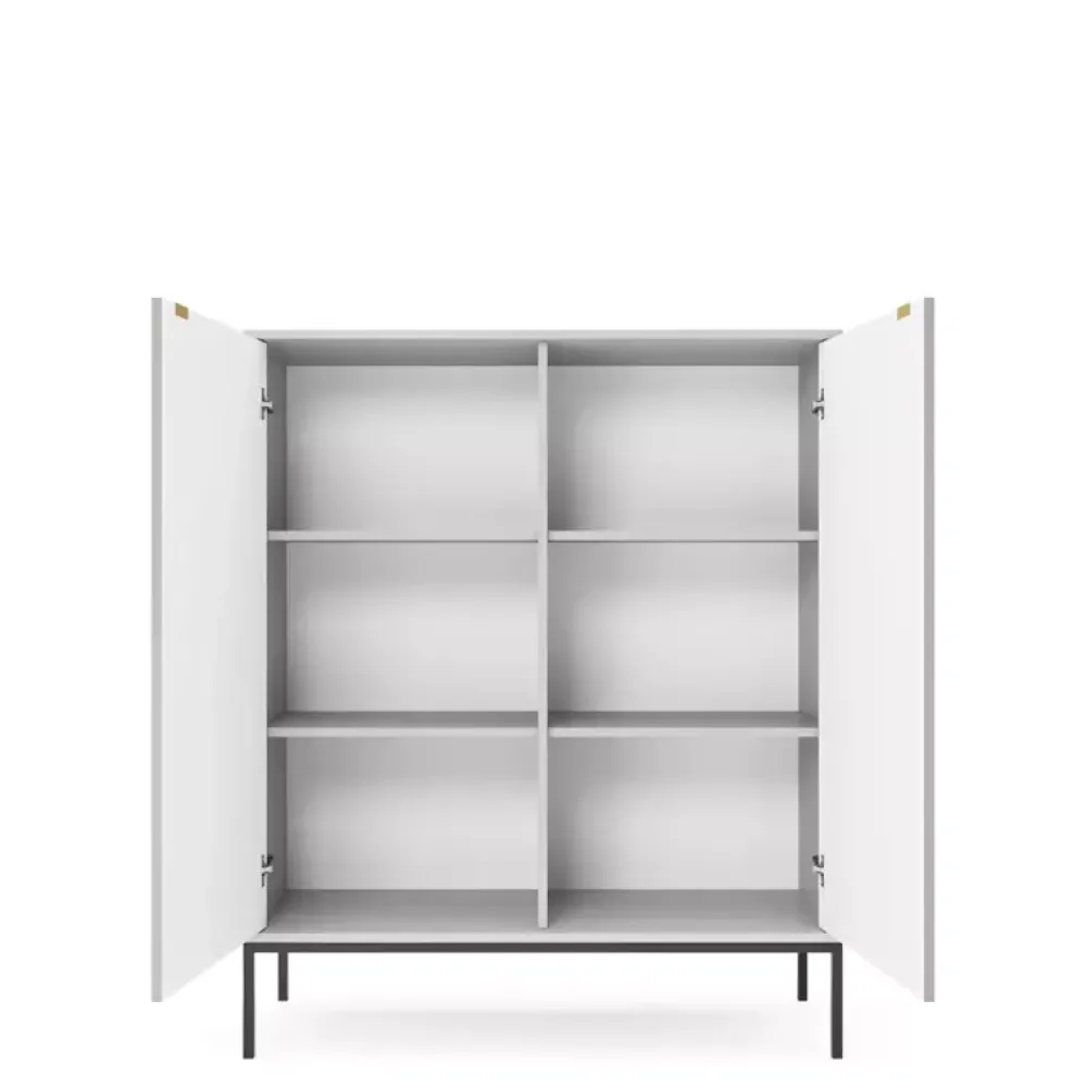 - Duża komoda AVANTI w stylu glamour zapewni Ci dużo miejsca do przechowywania. Wewnątrz znajdują się cztery półki z płyty laminowanej, które dają aż sześć pojemnych wnęk do przechowywania.