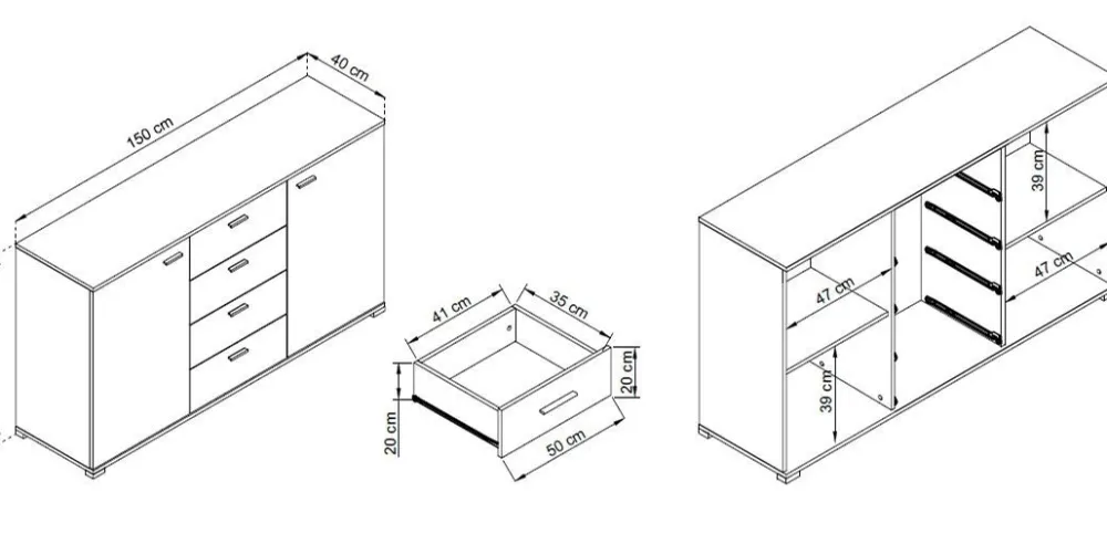 - Komoda wyposażona w dwie półki i cztery szuflady