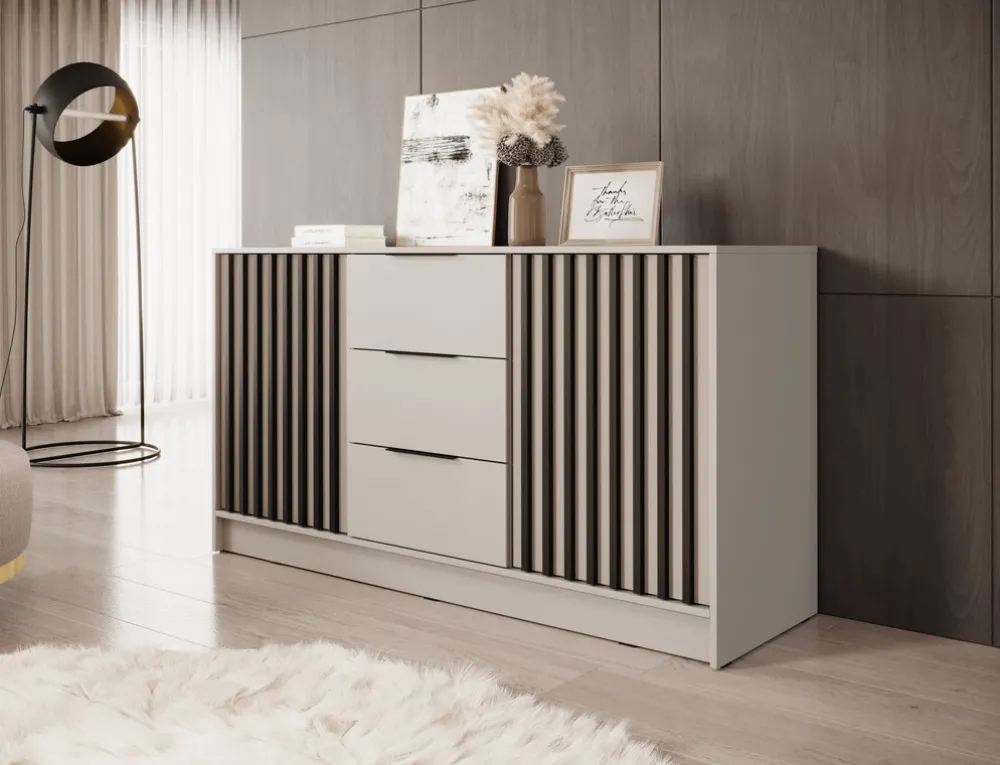 Komoda 155 cm z lamelami i szufladami – nowoczesna elegancja i perfekcyjna organizacja