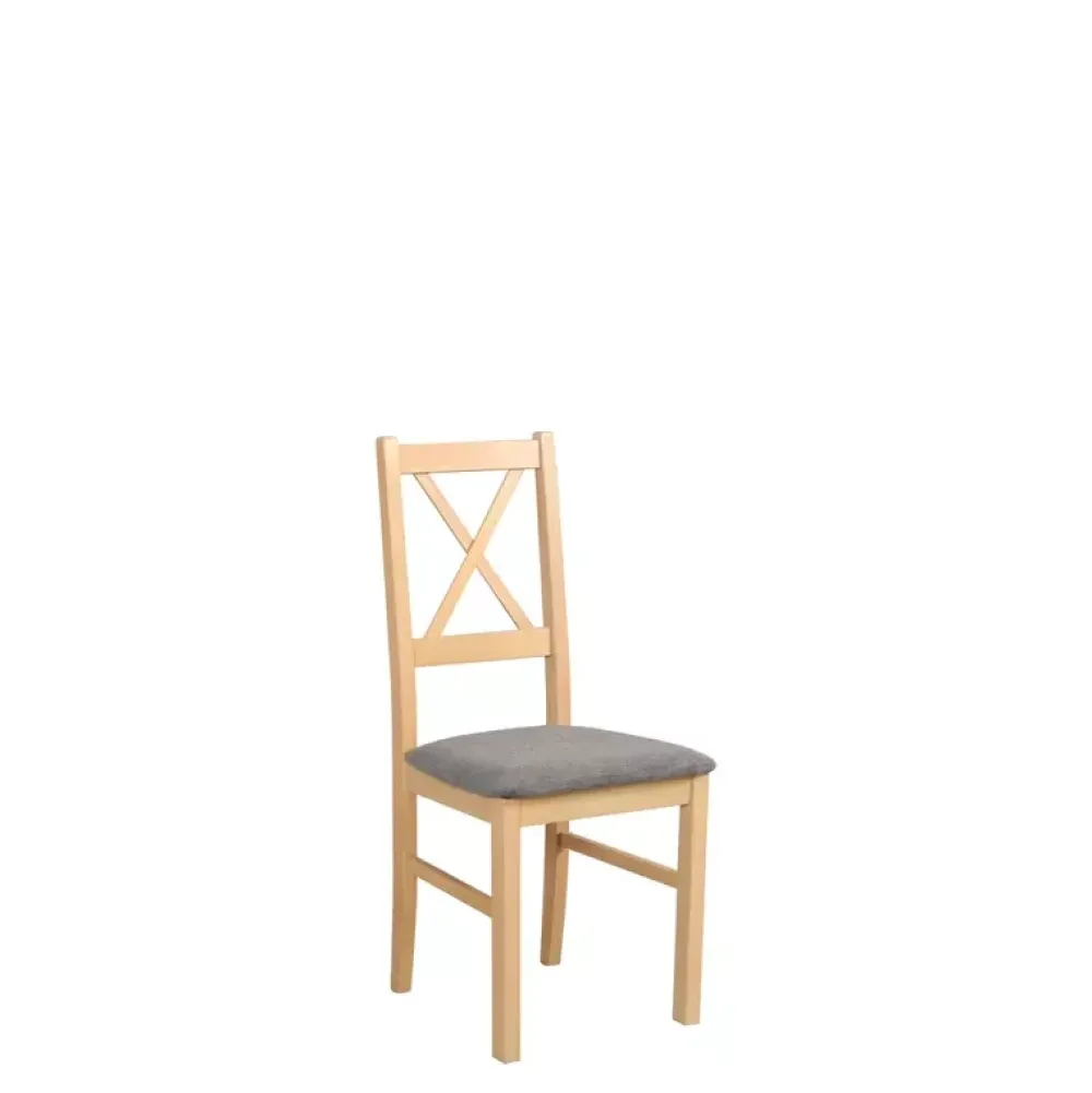 Krzesło drewniane z tapicerowanym siedziskiem z kolekcji NESTO to rozwiązanie, dzięki któremu umeblujesz swoją kuchnię bądź jadalnie, posiadające bardzo modne oparcie, które znajduje miejsce w wielu polskich kuchniach i jadalniach. Dostępnych jest wiele wybarwień drewna oraz tkanin, dzięki czemu dopasujesz krzesło wedle własnego gustu. Krzesło zostało wykonane z wysokiej jakości drewna bukowego, gwarantujących długotrwały okres eksploatacji. W związku, z wykorzystaniem naturalnych materiałów do produkcji, występują minimalne różnice pomiędzy poszczególnymi meblami takie jak usłojenie czy różnice odcieni drewna, które potwierdzają naturalne pochodzenie materiału.