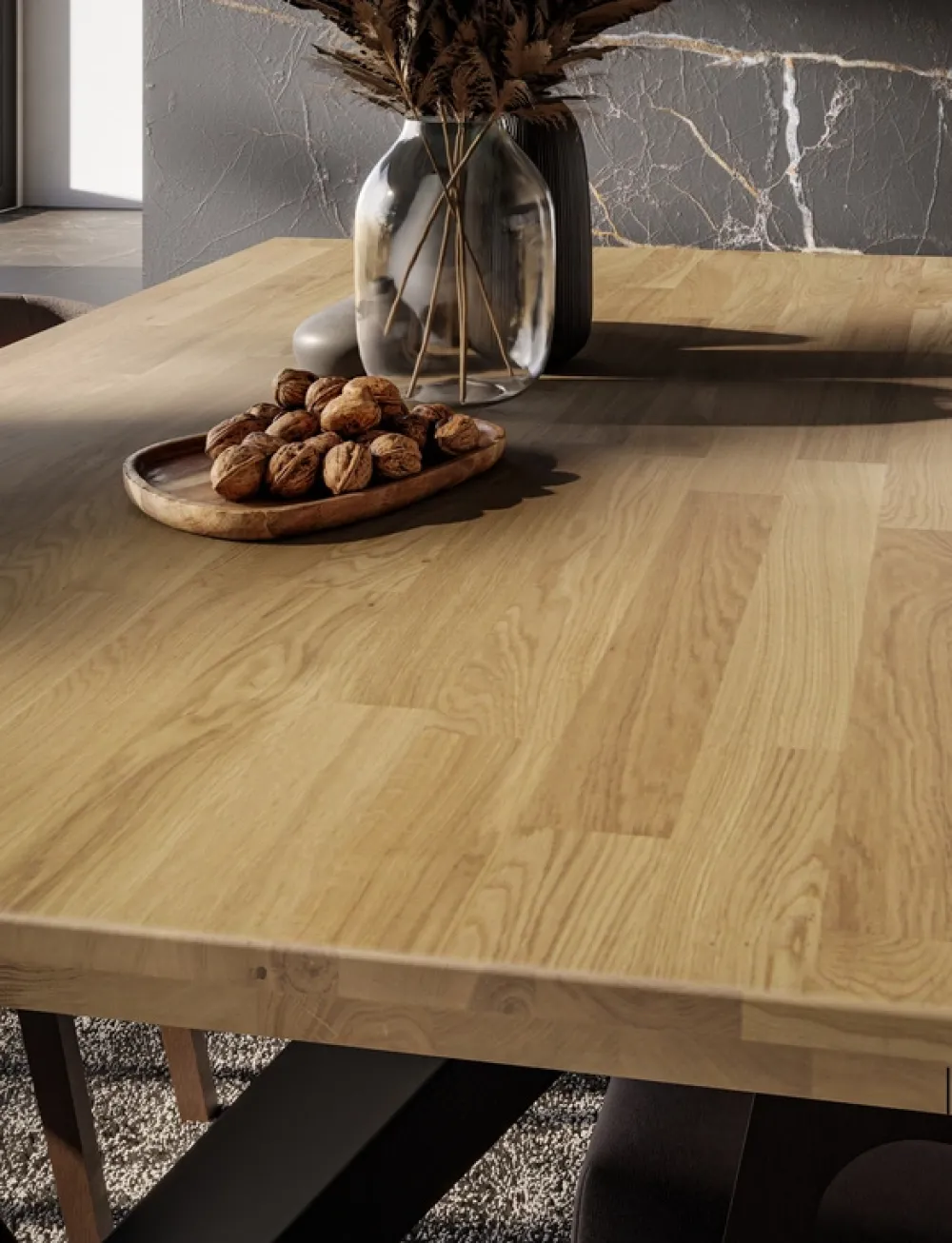 - Blat z litego drewna dębowego – wyjątkowa trwałość i piękno naturalnego usłojenia