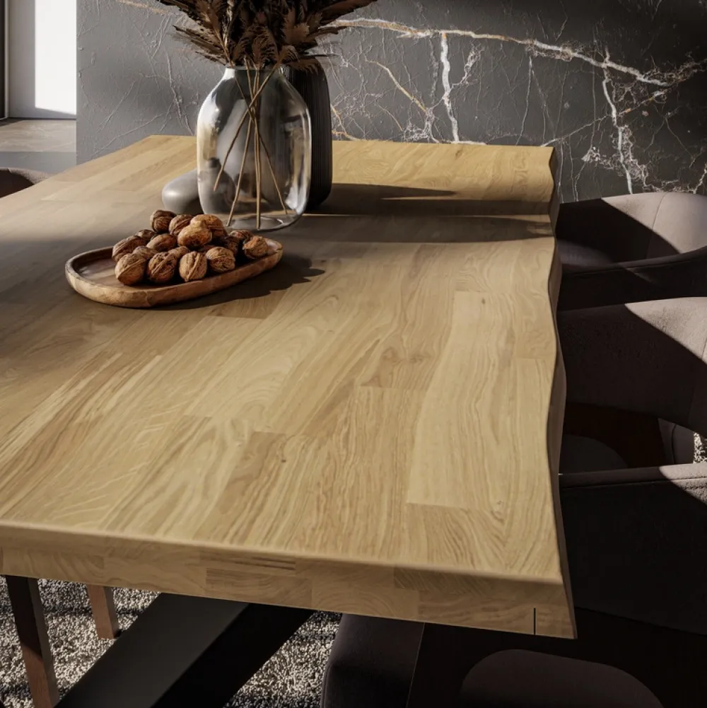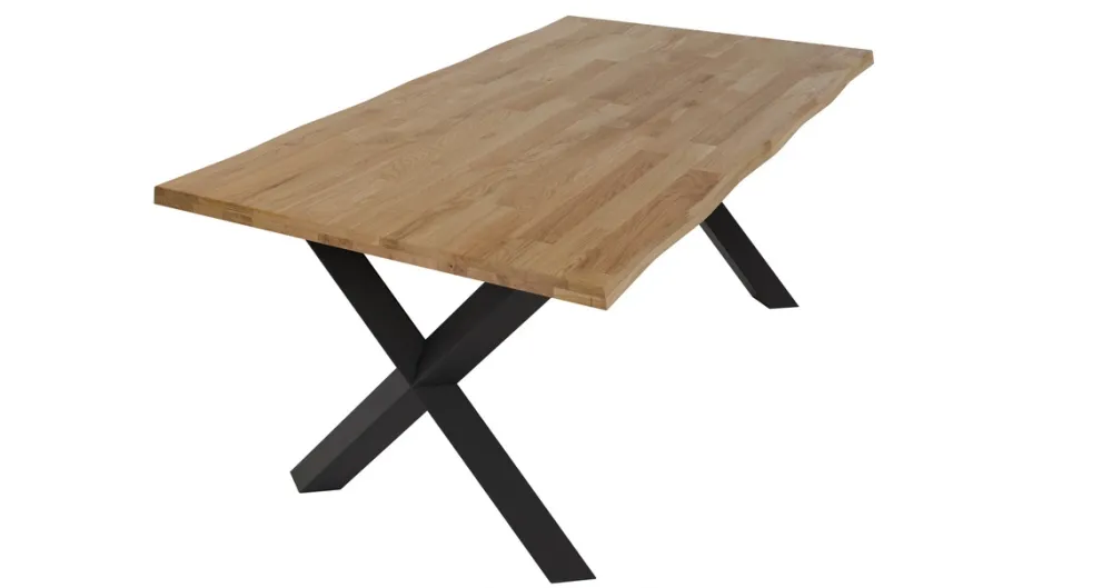 Stół loftowy z litego drewna MERLIVO to kwintesencja ponadczasowego designu, który łączy surowość metalu z ciepłem naturalnego dębu. Idealny do jadalni, kuchni lub salonu w stylu industrialnym, nowoczesnym czy minimalistycznym. Blat z olejowanego drewna dębowego emanuje naturalnym urokiem, a solidne metalowe nogi w formie litery X dodają mu charakteru i stabilności. Naturalnie nieregularne krawędzie blatu podkreślają jego autentyczność i organiczną formę – to stół, który nie udaje natury, tylko nią jest.