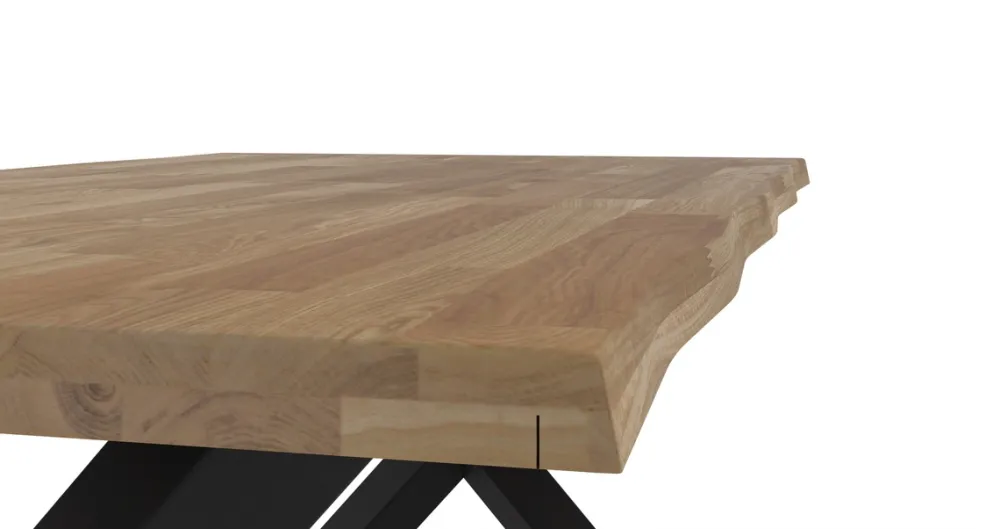 - Nieregularne krawędzie blatu – inspirowane naturalnym przebiegiem linii drewna, nadają meblowi wyjątkowy charakter