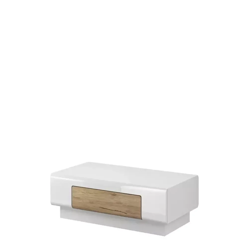 Elegancki stolik kawowy o wymiarach blatu 110 x 60 cm wyposażony w szufladę.