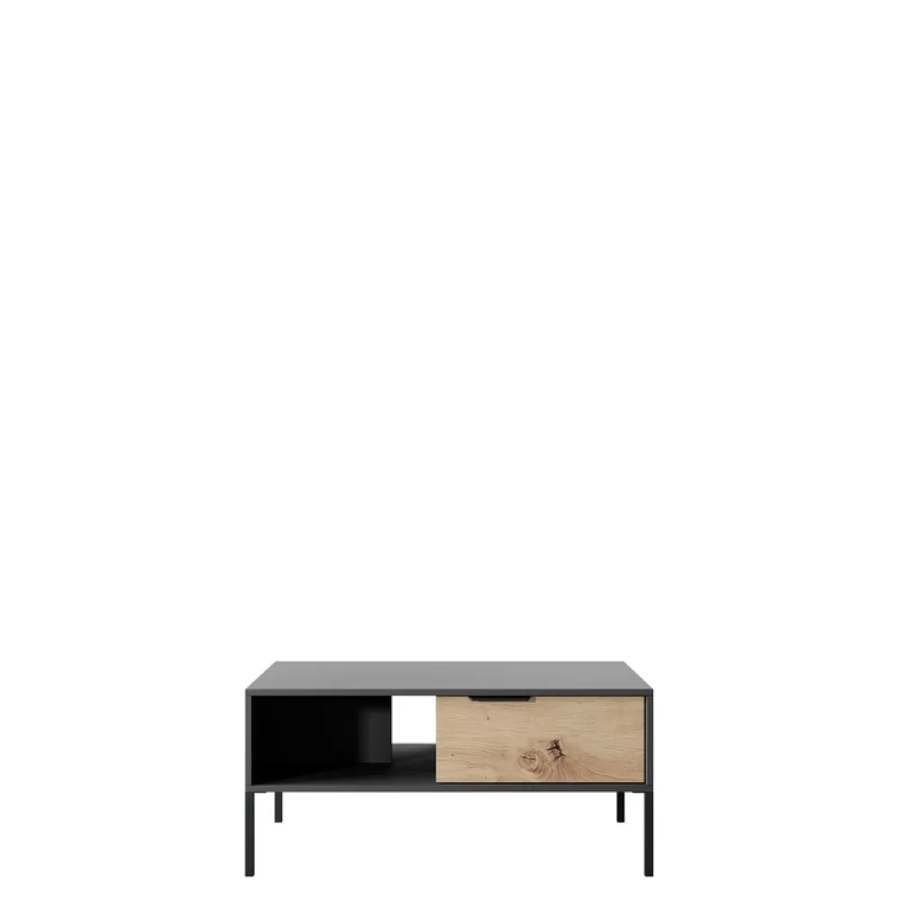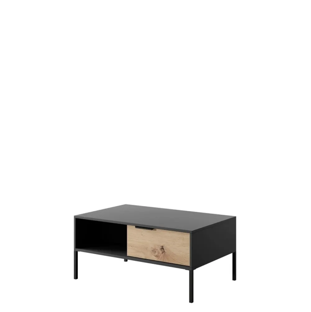 - Nowoczesny stolik kawowy do salonu RIMINI z dwoma szufladami w ciepłym kolorze dąb artisan. Jedna otwiera się do przodu, druga do tyłu. Praktyczna otwarta półka dla dodatkowej przestrzeni. Styl i funkcjonalność w jednym!