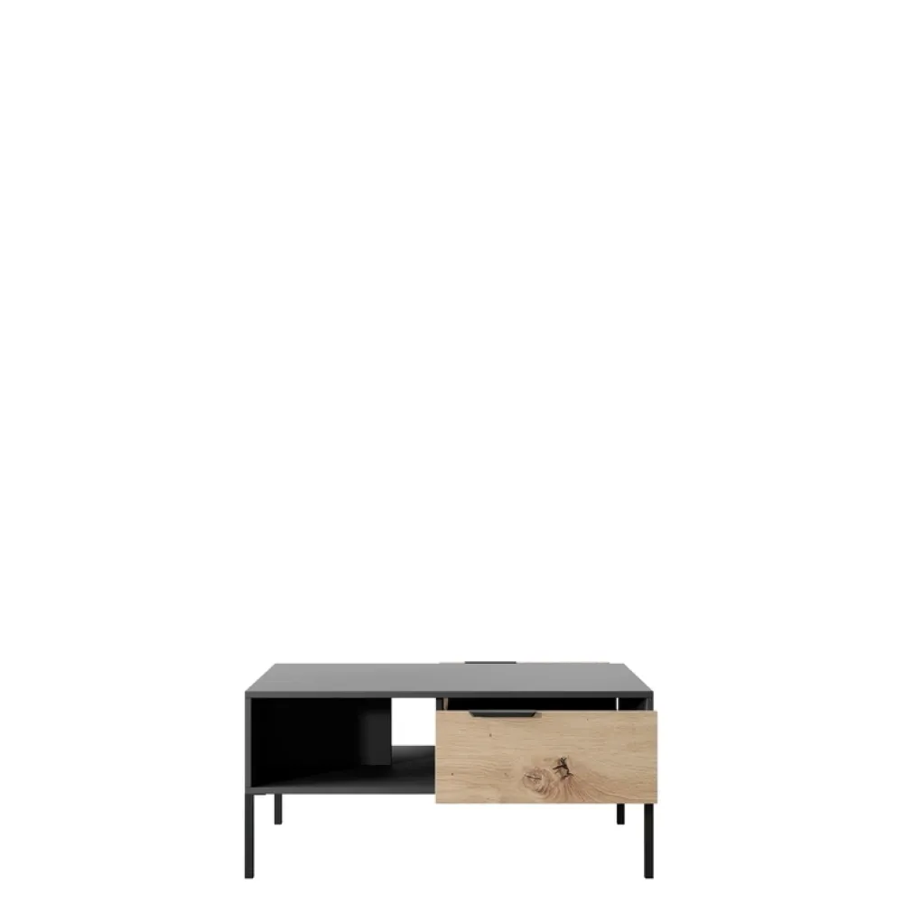 Stolik kawowy został wykonany z wysokiej jakości materiałów, dzięki czemu zachwyci Cię trwałością i wytrzymałością. Dwie szuflady, które otwierają się w przeciwnych kierunkach – jedna do przodu, a druga do tyłu – zostały wykończone kolorystycznie w pięknym odcieniu dębu artisan. Zapewniają praktyczne i szybkie przechowywanie Twoich ulubionych przedmiotów.