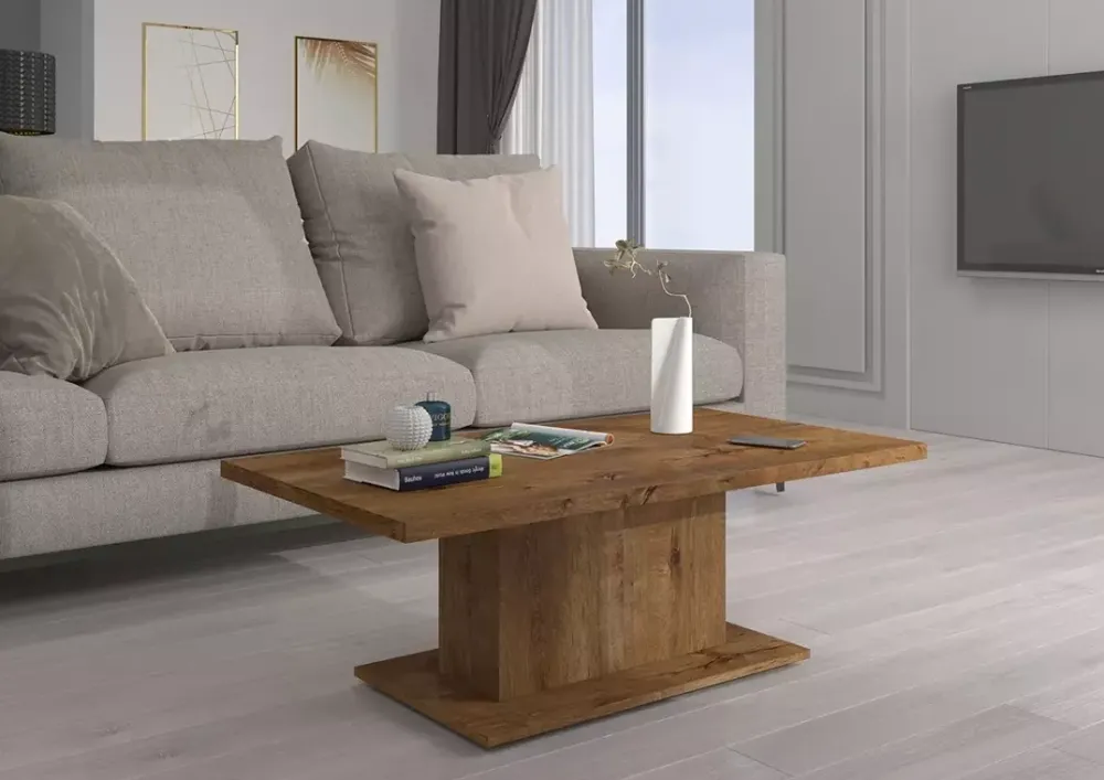 - Elegancki stolik kawowy w modnym kolorze dąb lefkas.