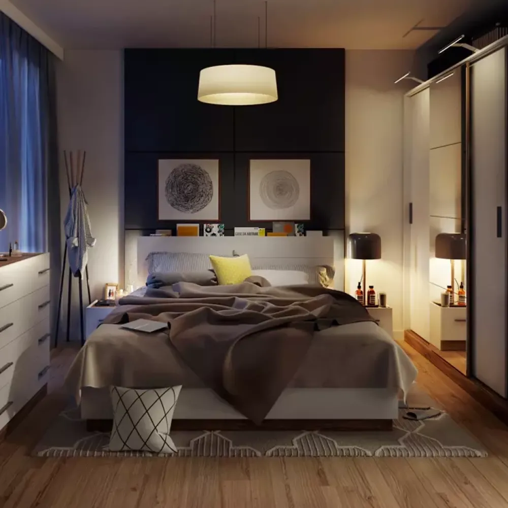 - Zagłówek może pełnić rolę subtelnej półki.