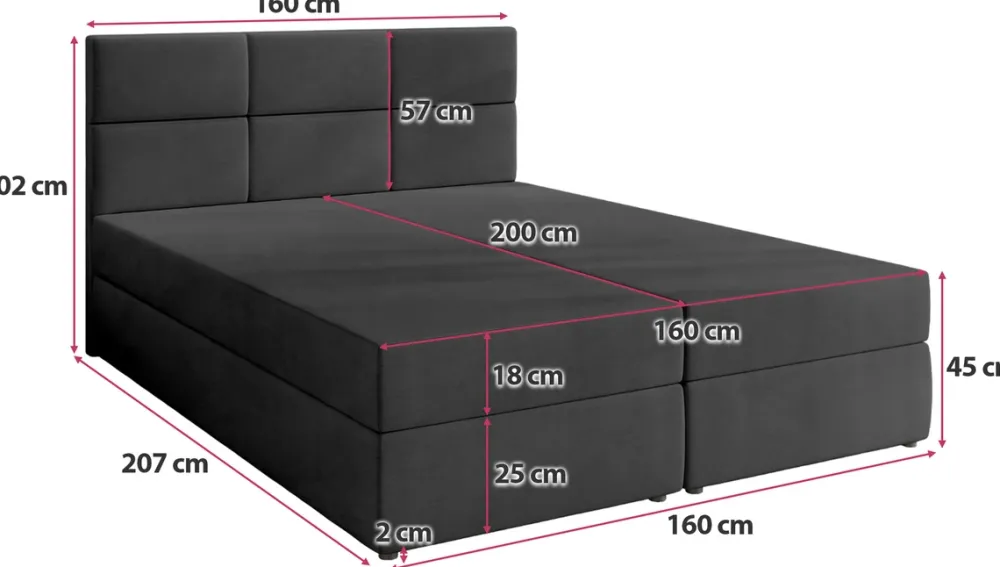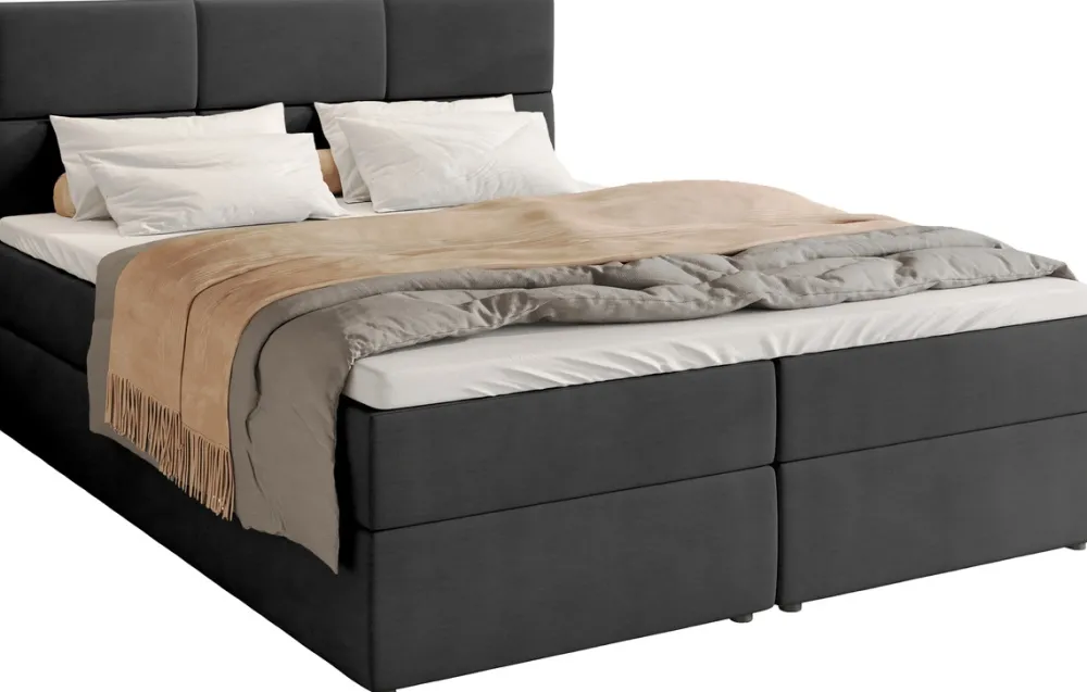 - Łóżko kontynentalne 160×200 BOSTON posiada średnio twardy materac na bazie sprężyn bonell oraz grubej warstwy pianki T30. Za dostęp do pojemnika na pościel odpowiada automat sprężynowy, który wspomaga rozkładanie i przejmuje na siebie ciężar.