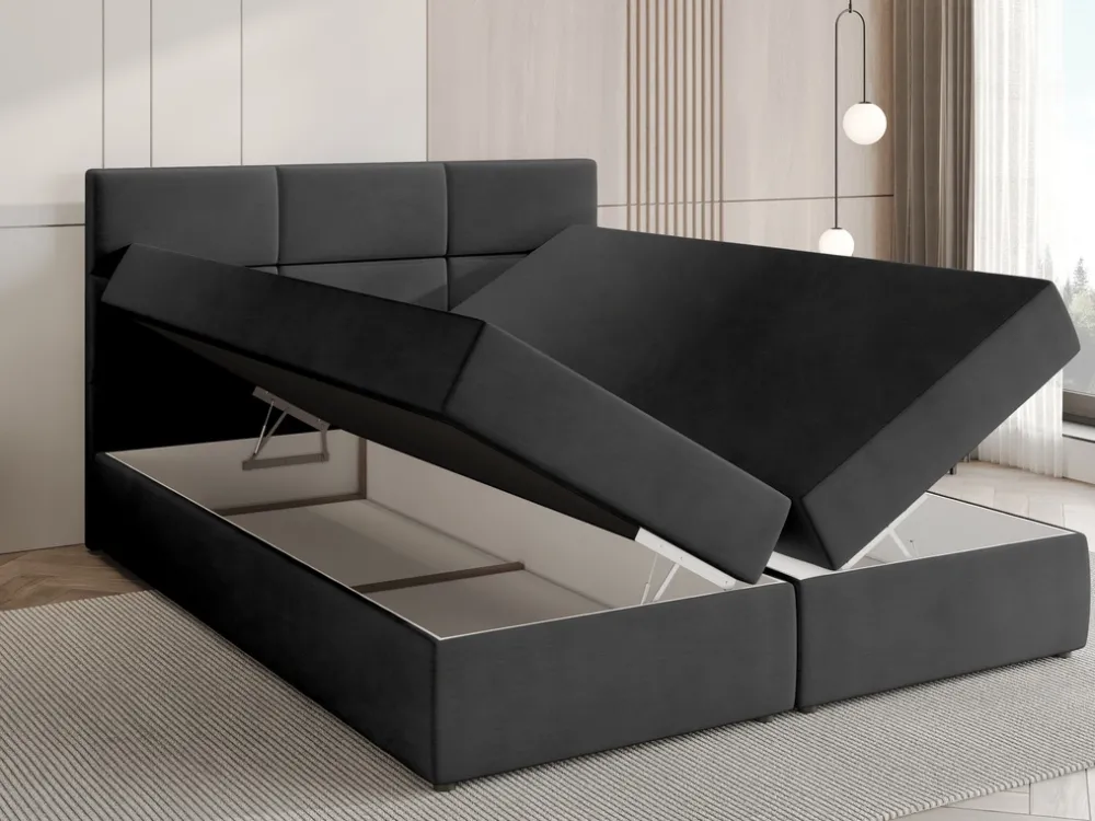 Dwa pojemniki na pościel otwierane są za pomocą sprężynowego automatu rozkładania, który przejmuje na siebie część ciężaru materaca, dzięki czemu dostęp do zawartości pojemników na pościel jest prosty oraz przyjemny.