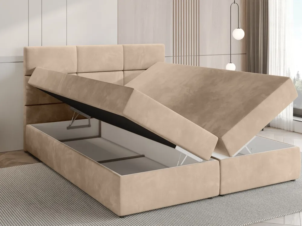 Dwa pojemniki na pościel otwierane są za pomocą sprężynowego automatu rozkładania, który przejmuje na siebie część ciężaru materaca, dzięki czemu dostęp do zawartości pojemników na pościel jest prosty oraz przyjemny.