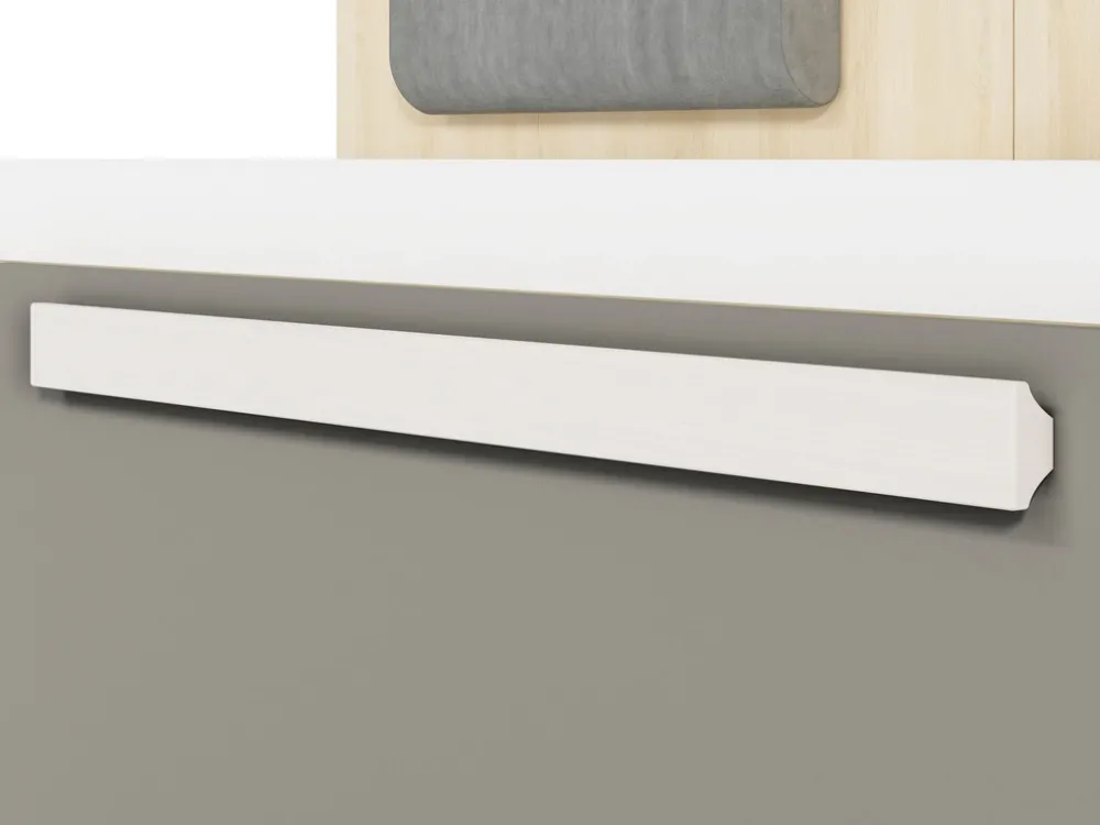 - Obrzeża łóżka są zabezpieczone przed uszkodzeniami mechanicznymi solidną okleiną ABS, co zwiększa trwałość mebla.