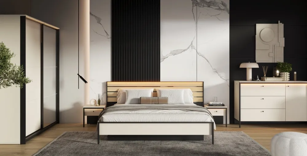 Odkryj idealne połączenie funkcjonalności i estetyki z łóżkiem ENNA, które zapewni Ci wygodny sen i doskonale uzupełni wystrój sypialni. Nowoczesny design z czarnymi akcentami, pojemna skrzynia na pościel oraz wbudowane oświetlenie LED tworzą mebel, który zachwyca zarówno wyglądem, jak i wygodą użytkowania.
