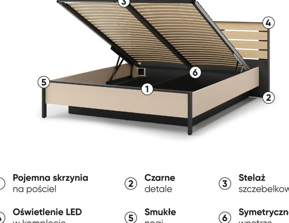 ✅ Oświetlenie LED w komplecie – tworzy nastrojowy klimat i ułatwia korzystanie z łóżka po zmroku