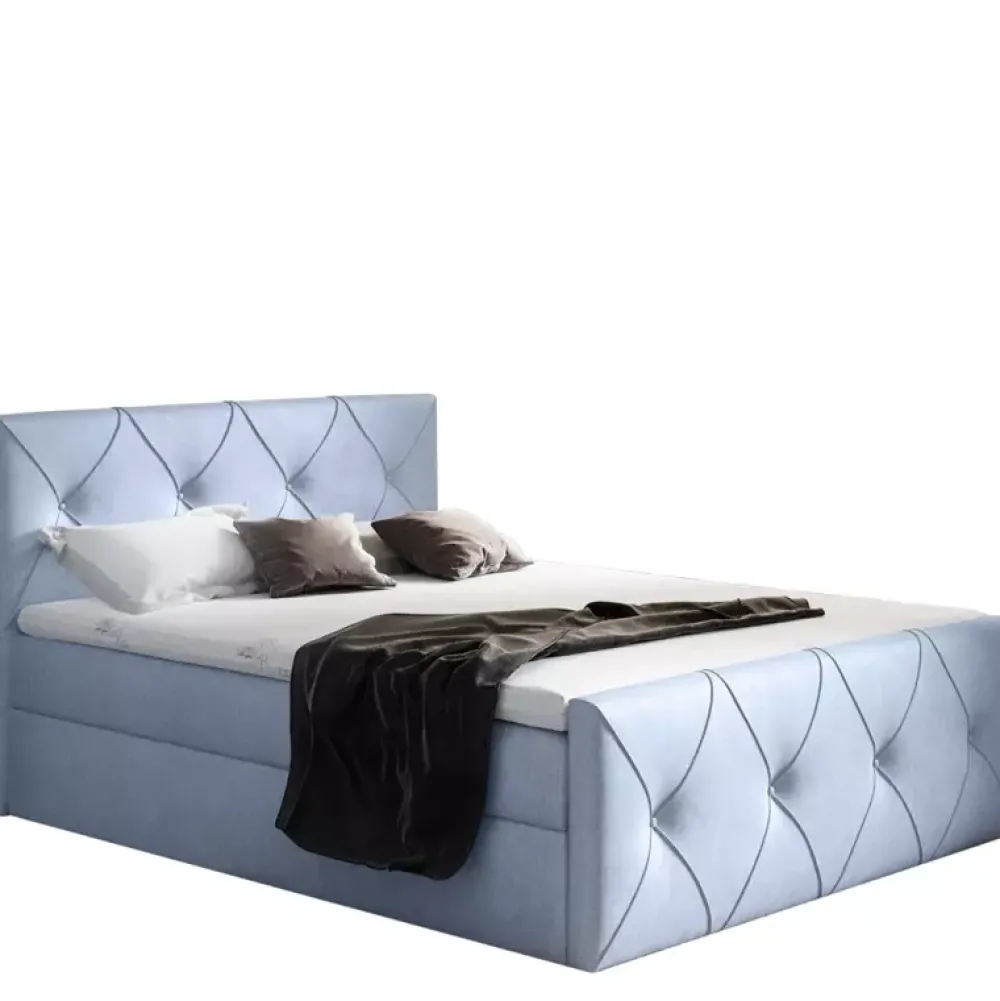 - Łóżko kontynentalne o powierzchni spania 140×200 cm. Łóżko z pojemnikiem na pościel. Łóżko z materacem bonell, opcjonalnie z materacem kieszeniowym. Dostępne w wielu kolorach oraz gatunkach tkanin.