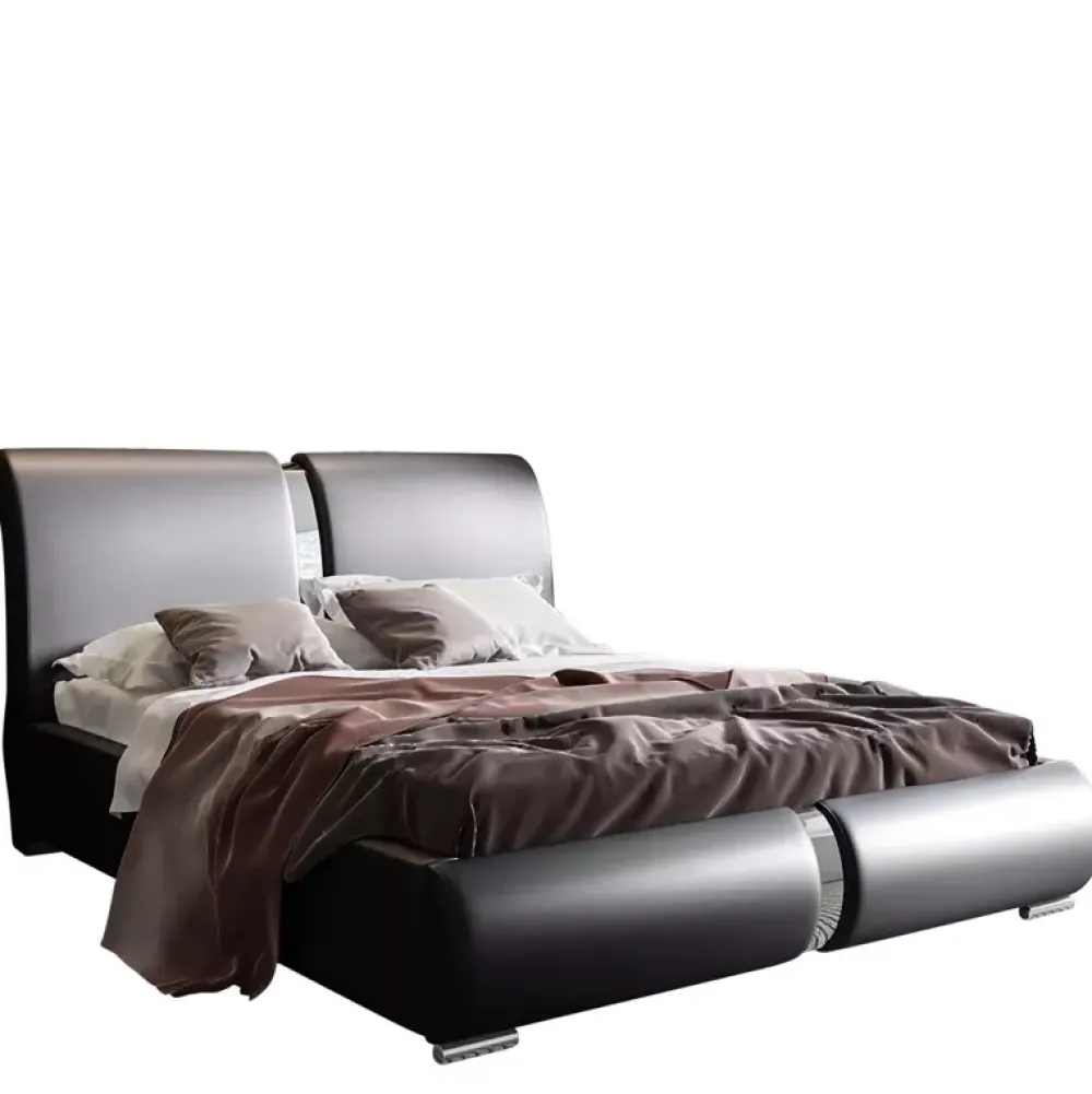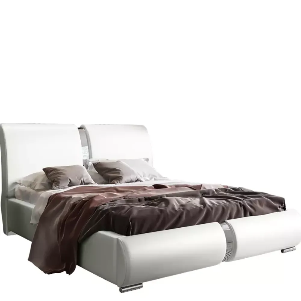 Łóżko do sypialni z ozdobną niklowaną listwą.