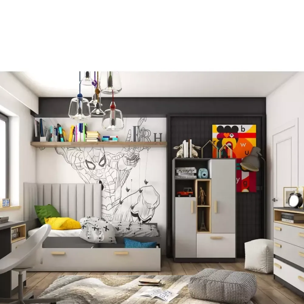 - Łóżko młodzieżowe POK zostało wyposażone w drewniany stelaż oraz materac ze sprężynami typu bonell, który gwarantuje wysoki komfort podczas snu oraz odpowiednie podparcie dla kręgosłupa. Łóżko posiada możliwość doposażenia w szufladę na pościel.
