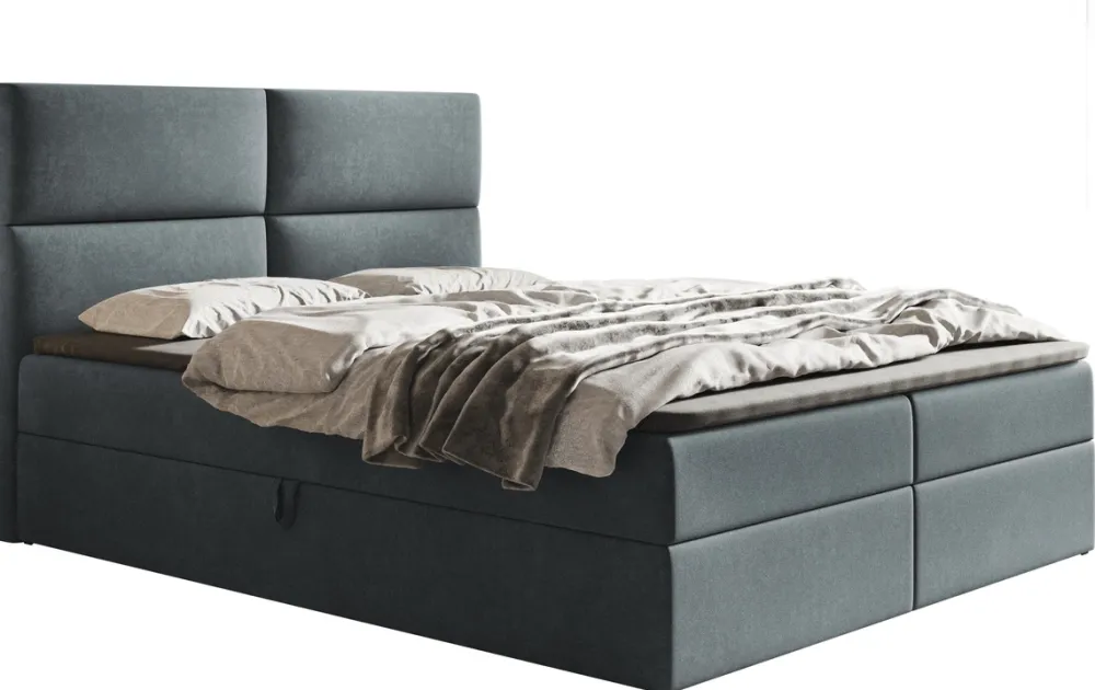 Z myślą o maksymalizacji przestrzeni użytkowej, łóżko kontynentalne wyposażone zostało w przemyślany pojemnik na pościel, który oferuje obfite miejsce do przechowywania, pozwalając na utrzymanie porządku i organizacji w Twojej sypialni. Sprężynowy automat rozkładania zapewnia łatwość i wygodę dostępu, czyniąc korzystanie z pojemnika niezwykle intuicyjnym i bezproblemowym.