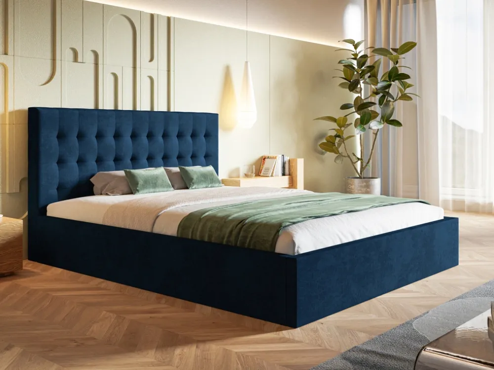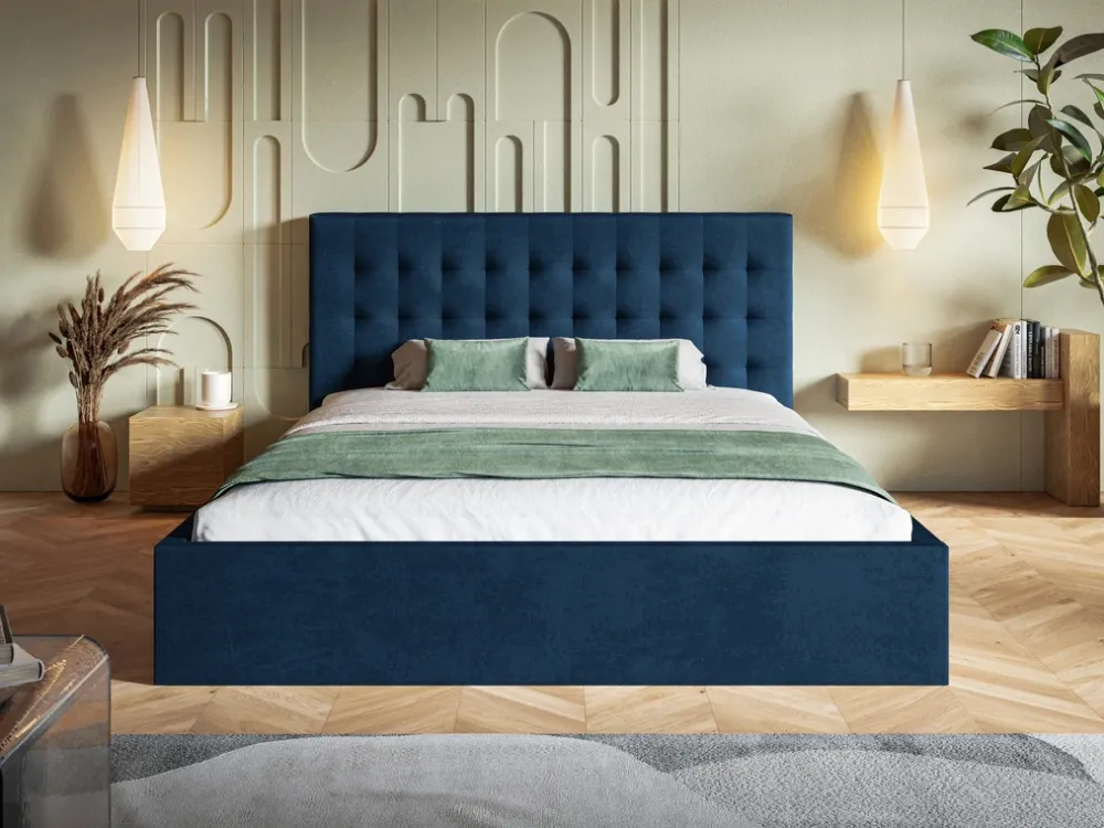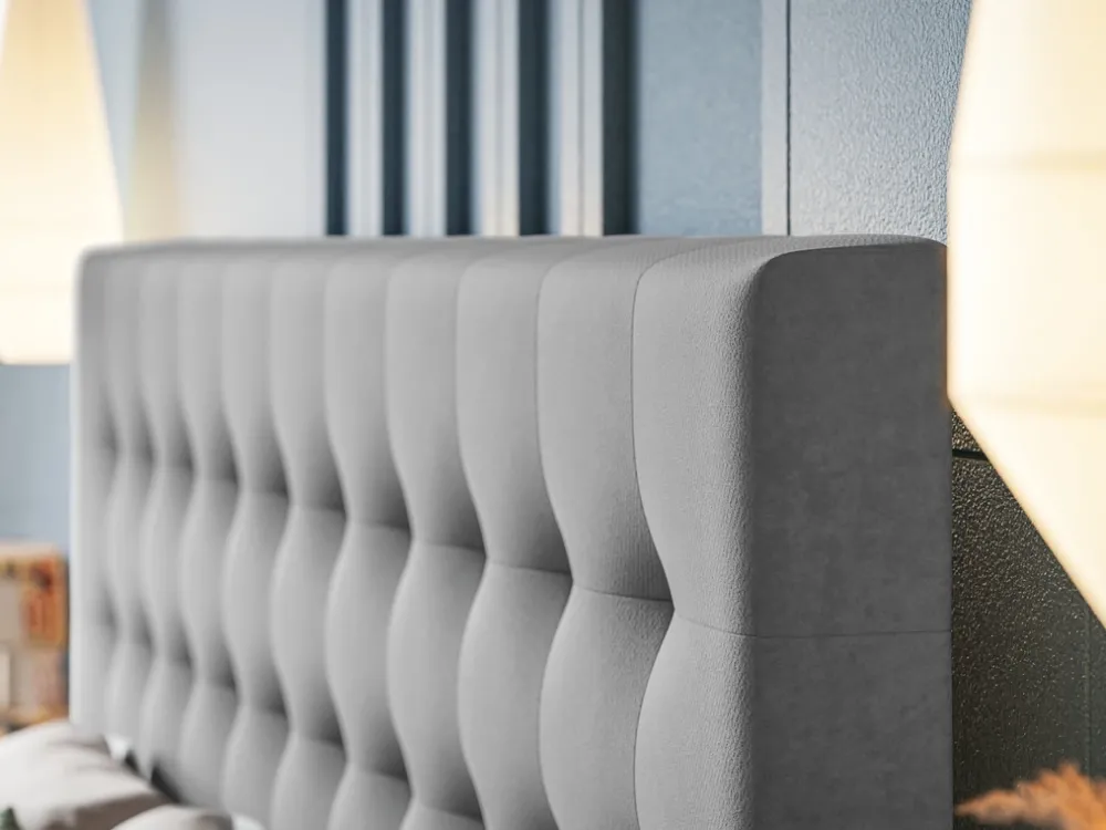 - Łóżko dwuosobowe wyposażone w wygodne oparcie, które dodatkowo możemy zmodyfikować pod względem wysokości w zakresie od 80 do 120 cm. Dostępne jest w kilkudziesięciu wariantach kolorystycznych, które znajdziecie w konfiguratorze obok innych opcji.