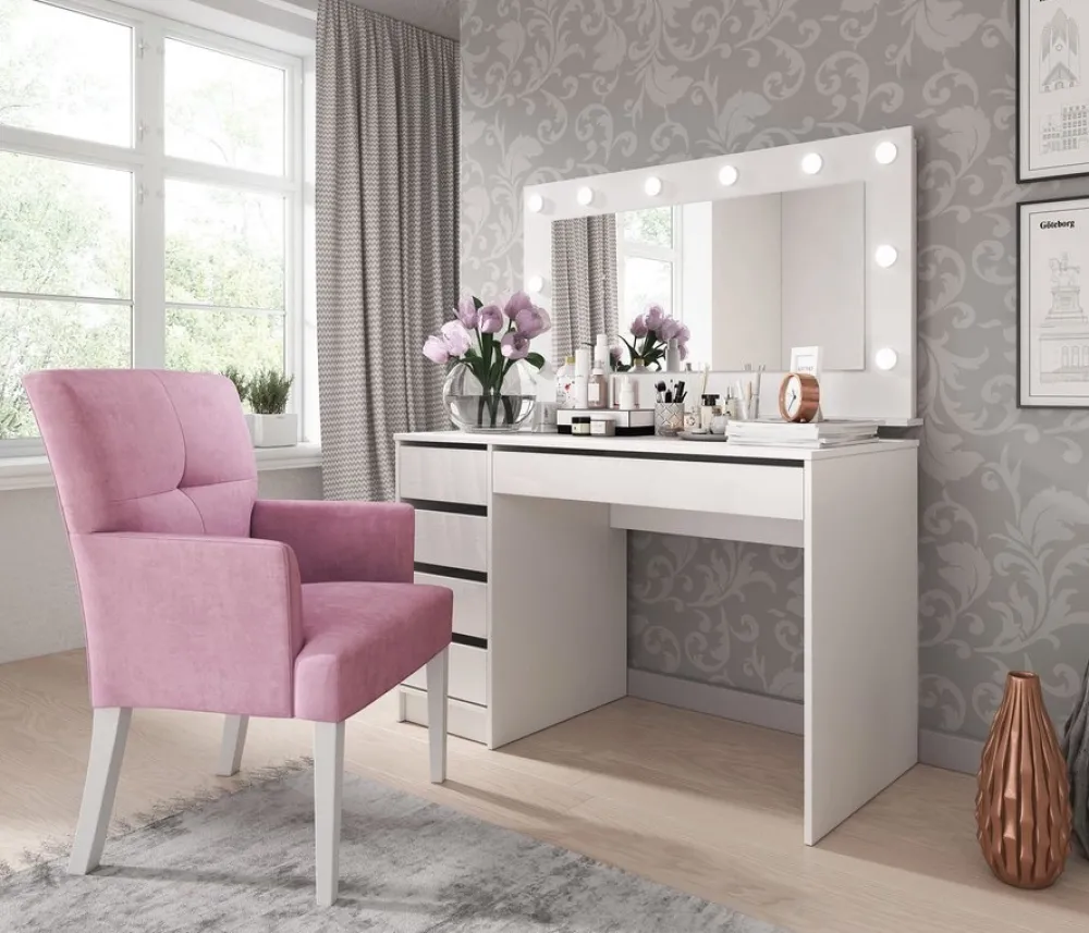 Stwórz funkcjonalną toaletkę dla siebie lub swojej pociechy, łącząc lustro z biurkiem JULIA.