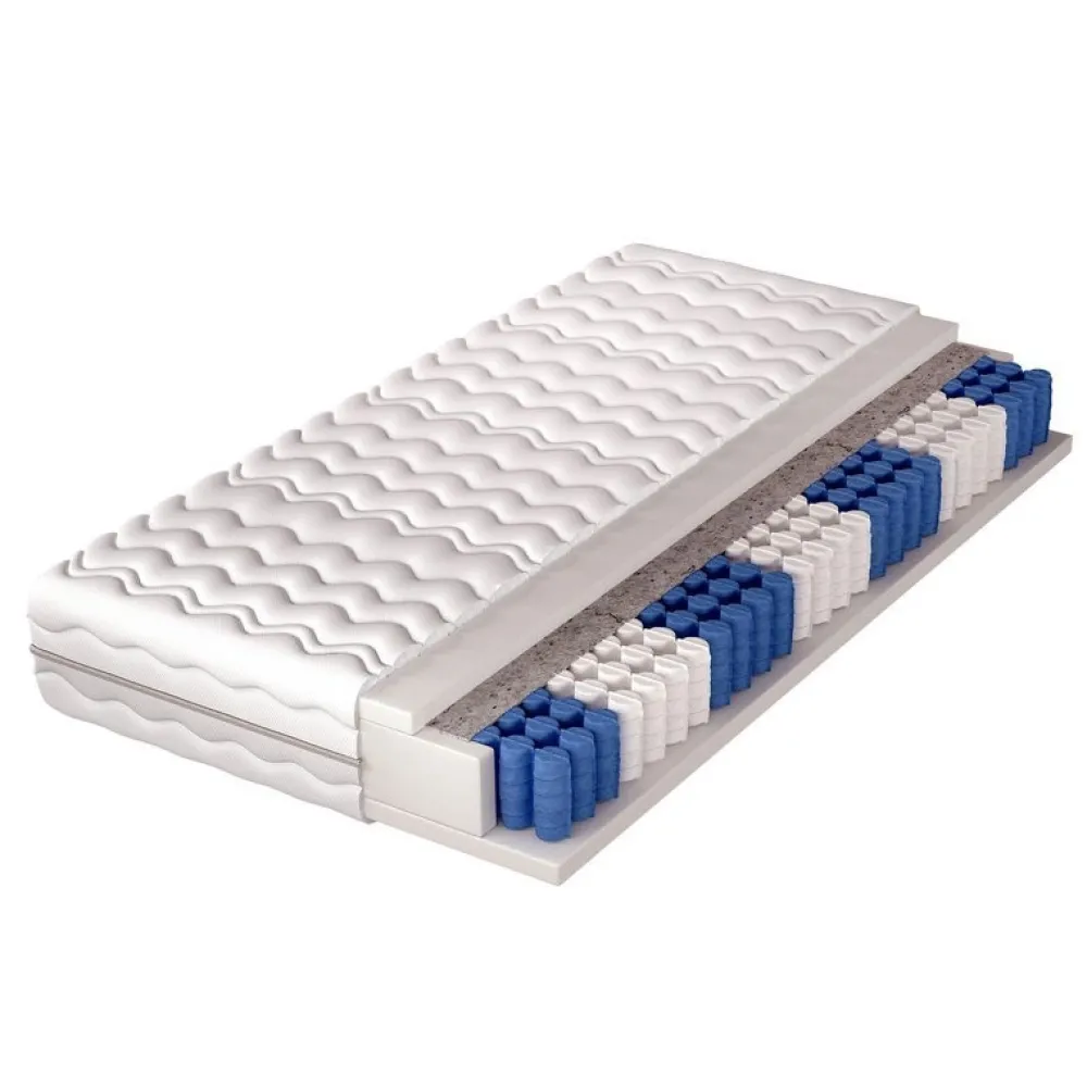 Materac kieszeniowo-piankowy, dwustronny, średnio twardy o siedmiu strefach twardości.