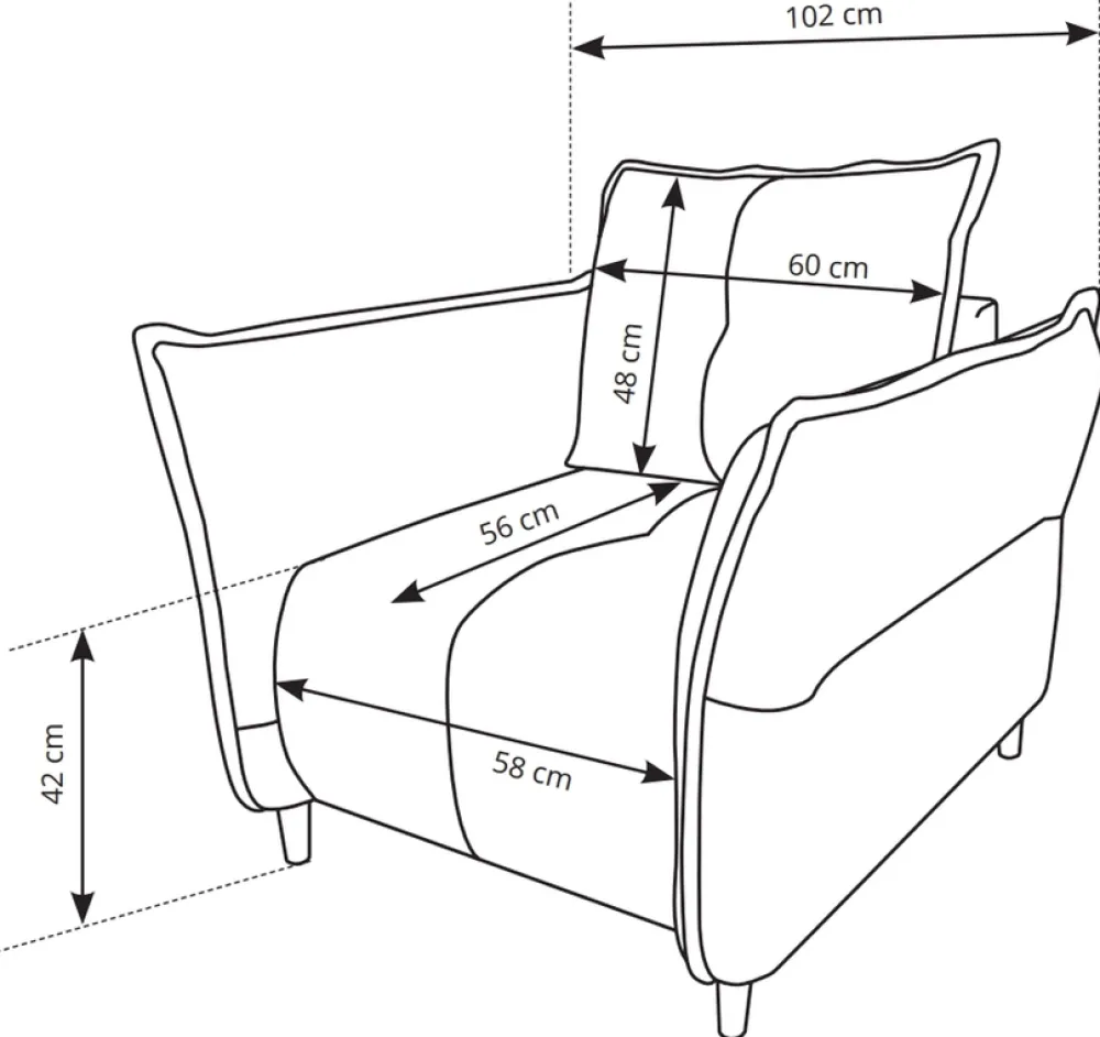 Stylowy i wygodny, fotel zachwyci Cię zaokrąglonymi boczkami i ozdobnymi przeszyciami, które sprawią, że stanie się on wyjątkowym dodatkiem do Twojego salonu, oraz z pewnością zwróci uwagę gości.