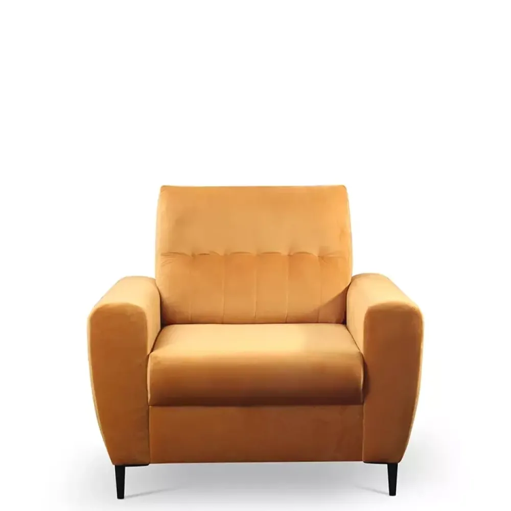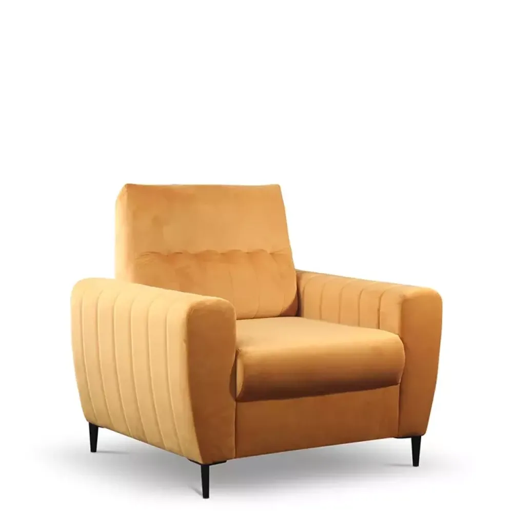 Fotel wypoczynkowy z kolekcji LIDIA posiada komfortowe podłokietniki. Jest bardzo wygodny, ponieważ w siedzisku zastosowano piankę PUR, która pozwoli Ci cieszyć się wysokiej jakości meblem przez długie lata. Ten wygodny fotel posiada przepiękne przeszycia, dzięki którym prezentuje się zjawiskowo. Wyrafinowanego szyku nadają fotelowi metalowe stopki w kolorze czarnym. Fotel do salonu nie musi być nudną bryłą. Może być ozdobą twojego salonu, a takiej ozdoby jak fotel Lidia nikt się chyba nie powstydzi.