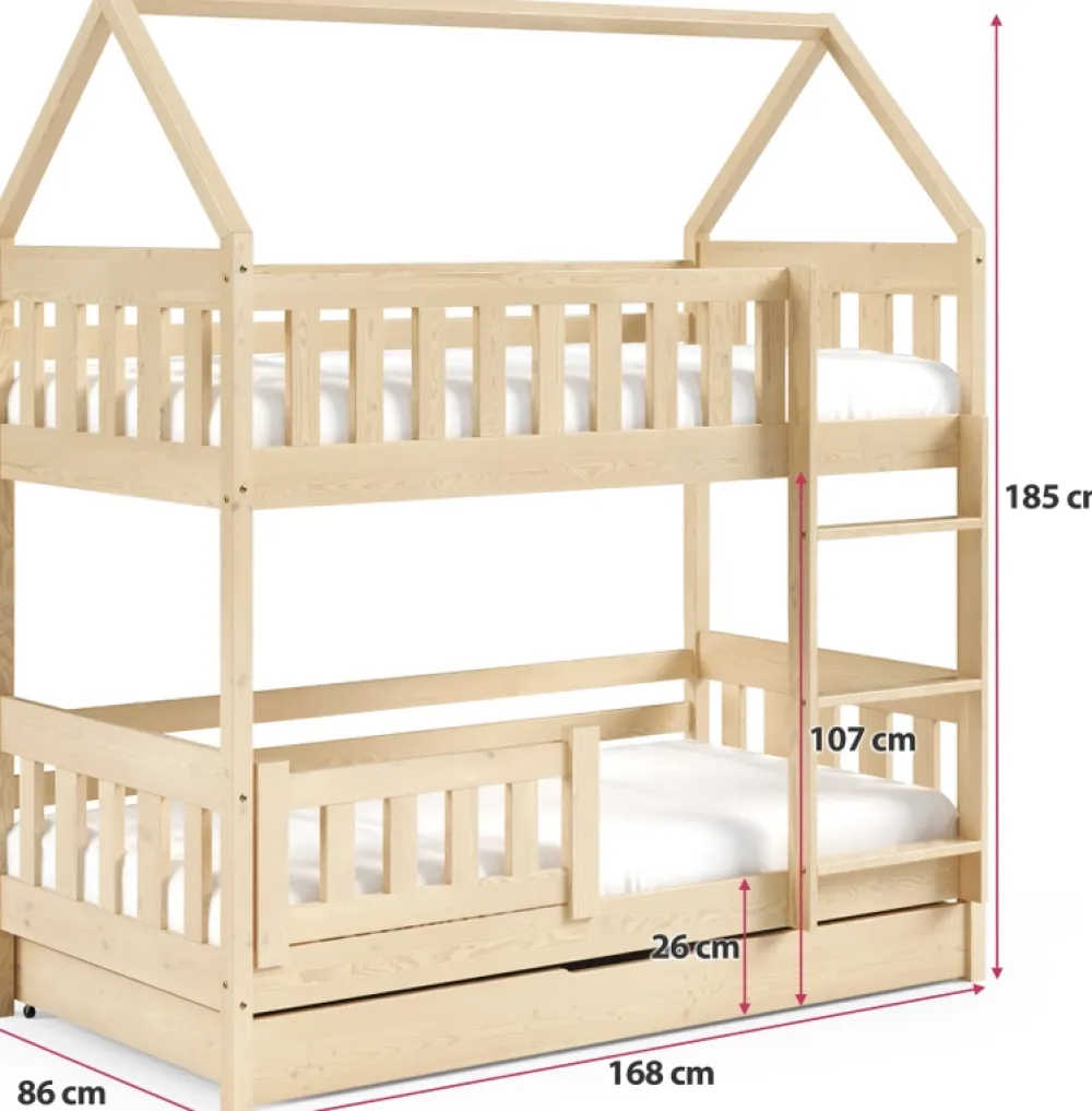 Jego uniwersalny projekt pozwala na montaż drabinki po prawej lub lewej stronie, dzięki czemu łóżko piętrowe doskonale wpasuje się w każdą aranżację i przestrzeń pokoju dziecięcego. Niezależnie od tego, czy pokój ma ograniczoną przestrzeń, czy potrzebujesz elastyczności w projektowaniu, to łóżko oferuje praktyczne rozwiązanie, dostosowane do indywidualnych potrzeb.
