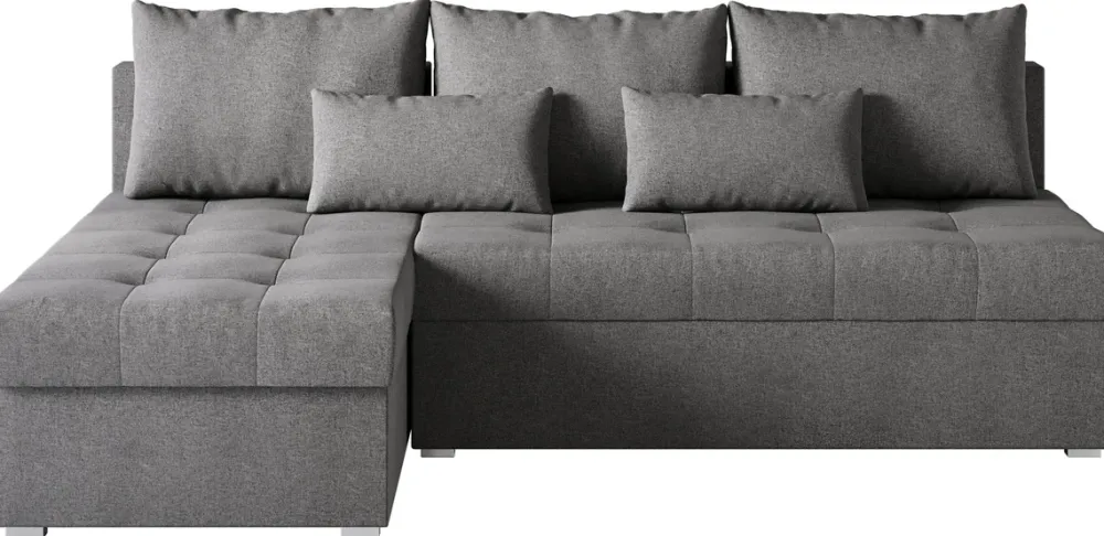 Narożnik posiada uniwersalną konstrukcję, która pozwala zdecydować o umieszczeniu wysuniętej części mebla (otomany) po lewej lub prawej stronie dopiero podczas montażu.